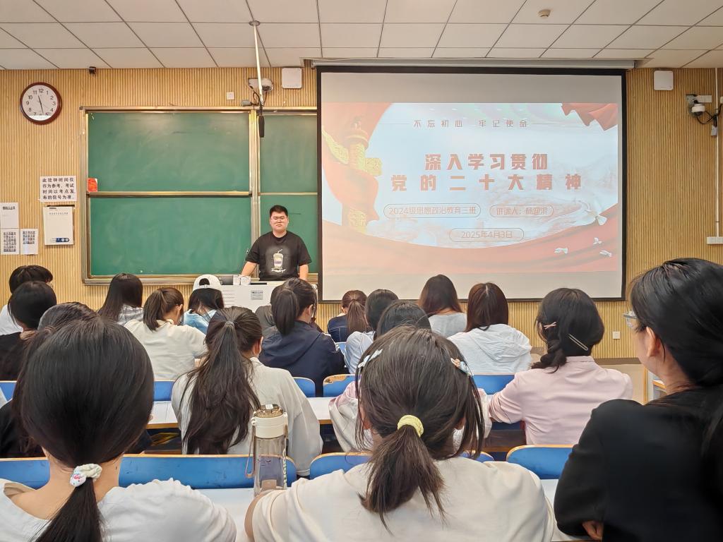 为深入学习贯彻党的二十大精神,永利集团官网2024级思想政治教育三班于4月3日在社科楼515教室召开“深入学习贯彻党的二十大精神”主题团课。本次活动由团支书杨迎滨主持,班级同学共同参与。