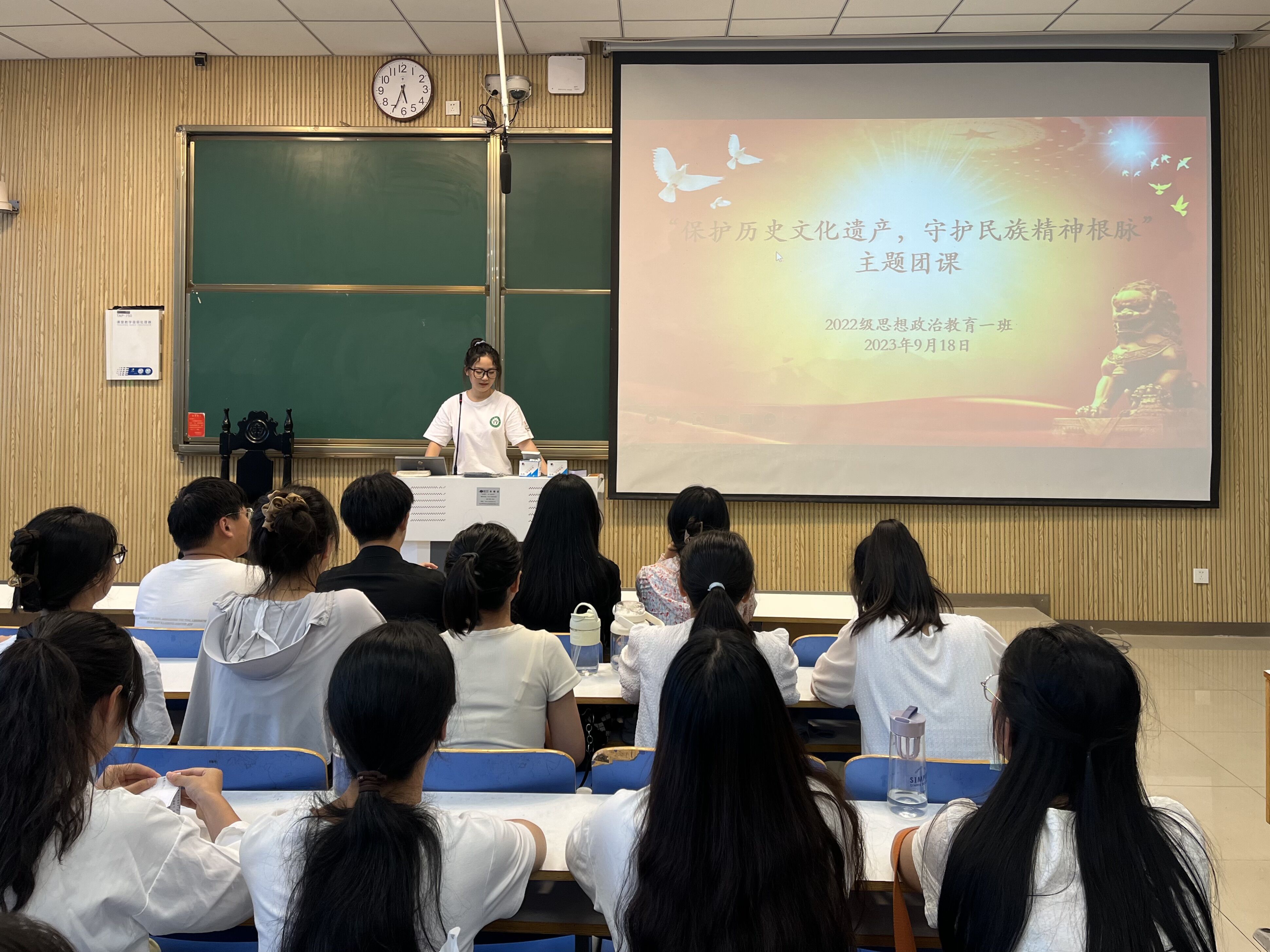 9月18日下午,永利集团官网2022级思想政治教育一班在社科楼514教室召开“保护历史文化遗产,守护民族精神根脉”主题团课。永利集团官网2022级思想政治教育一班全体同学共同参与本次团课,团课由团支书李佳茹主持。