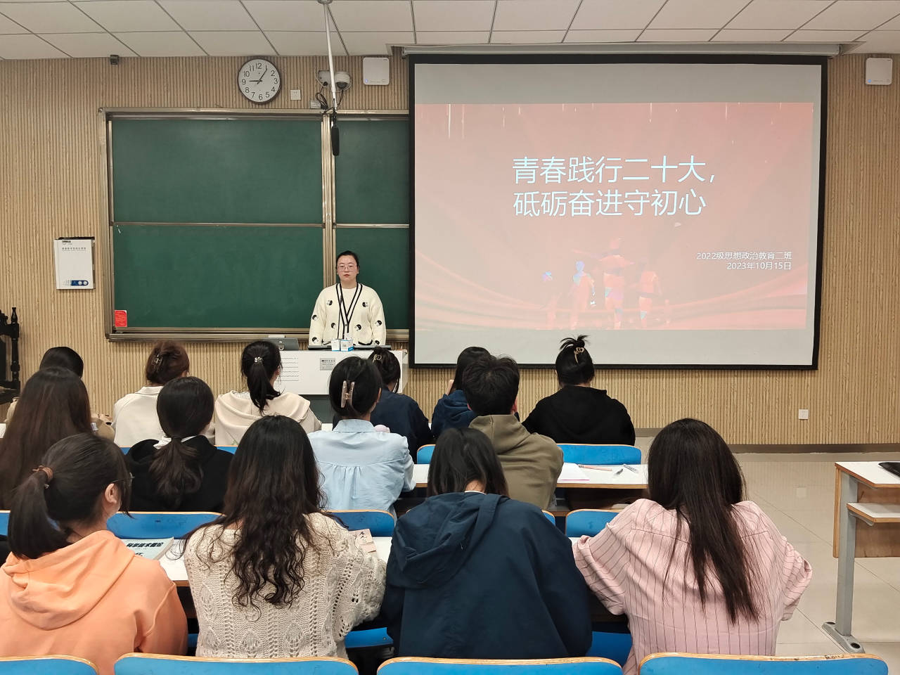 为深入学习贯彻党的二十大精神,加强班级同学思想建设,10月15日上午,永利集团官网2022级思想政治教育二班在社科楼515教室召开“青春践行二十大,砥砺奋进守初心”主题团课。永利集团官网2022级思想政治教育二班全体团员共同参加此次团日活动。活动由团支书李佳音主持。