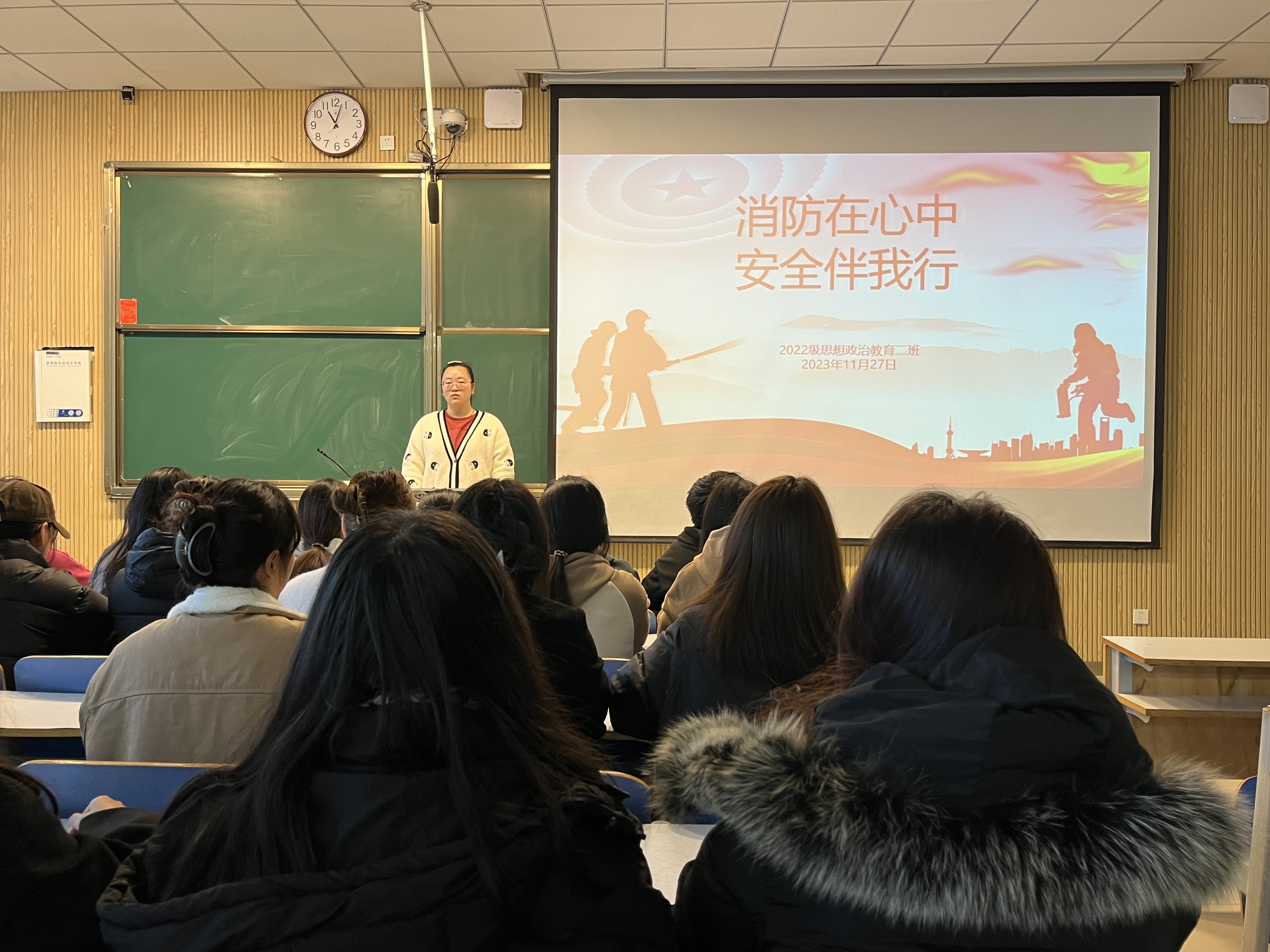 为进一步增强班级成员的消防安全意识、提高抵御火灾风险的能力,11月27日上午,永利集团官网2022级思想政治教育二班在社科楼515教室召开“消防在心中,安全伴我行”主题班会。永利集团官网2022级思想政治教育二班全体成员共同参与此次班会。会议由班长李佳音主持。