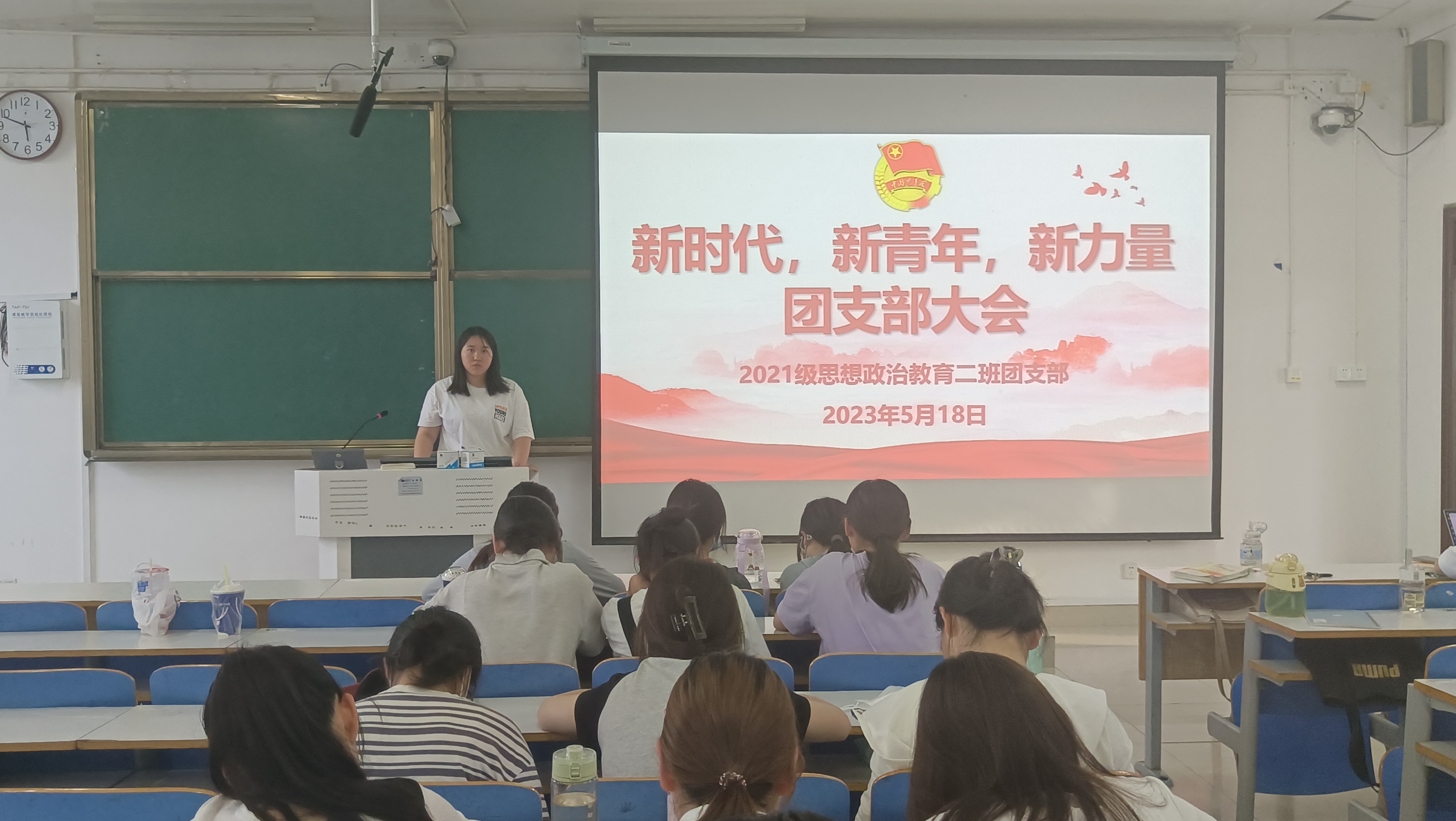 5月18日下午,永利集团官网2021级思想政治教育二班在社科楼514教室召开“新时代,新青年,新力量”团支部大会。2021级思想政治教育二班全体团员参加此次团支部大会。会议由团支书王婧欣主持。