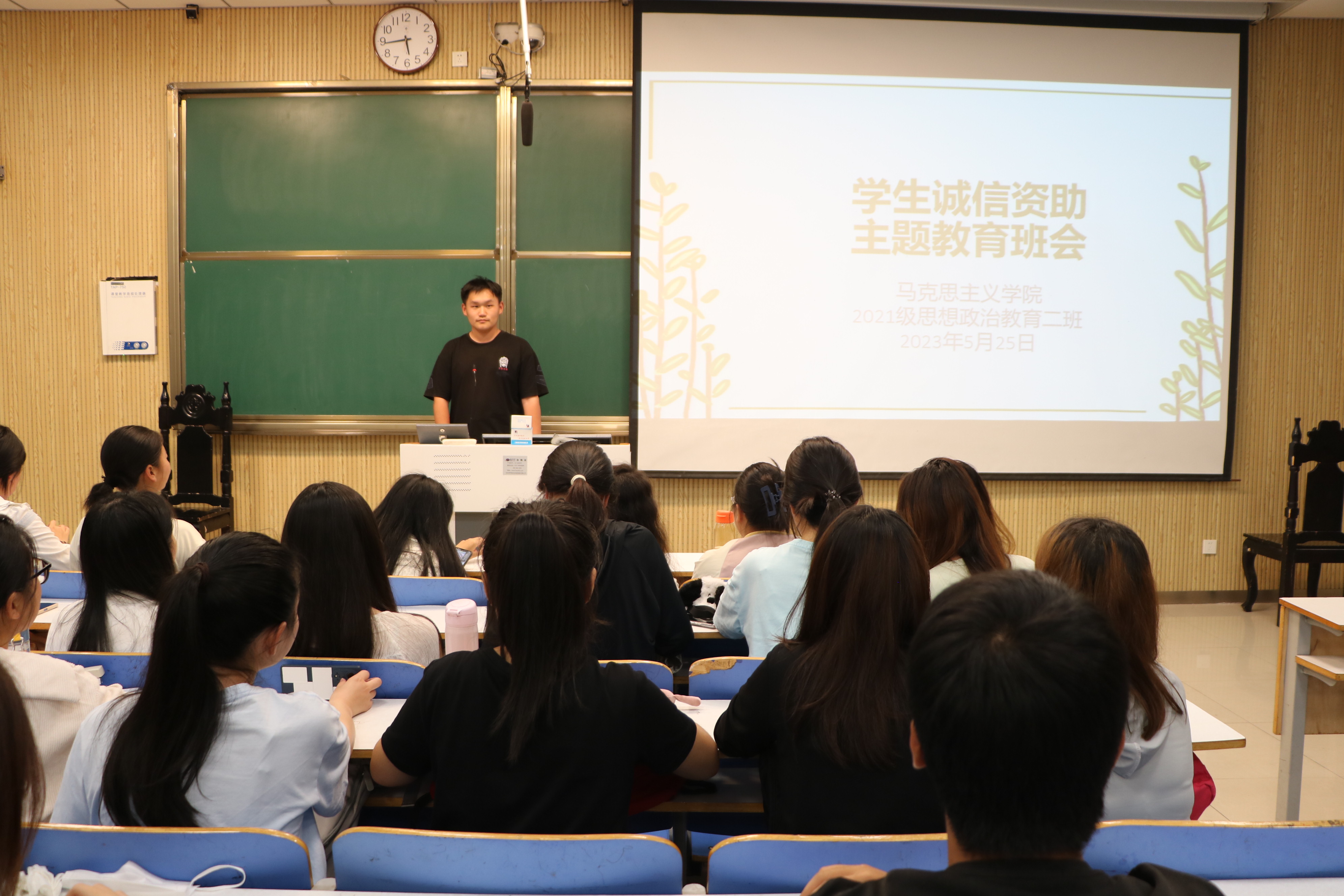 5月25日下午,永利集团官网2021级思想政治教育二班在社科楼515教室召开学生诚信资助主题教育班会。2021级思想政治教育二班全体同学参加此次主题班会。班会由副班长任振豪主持。