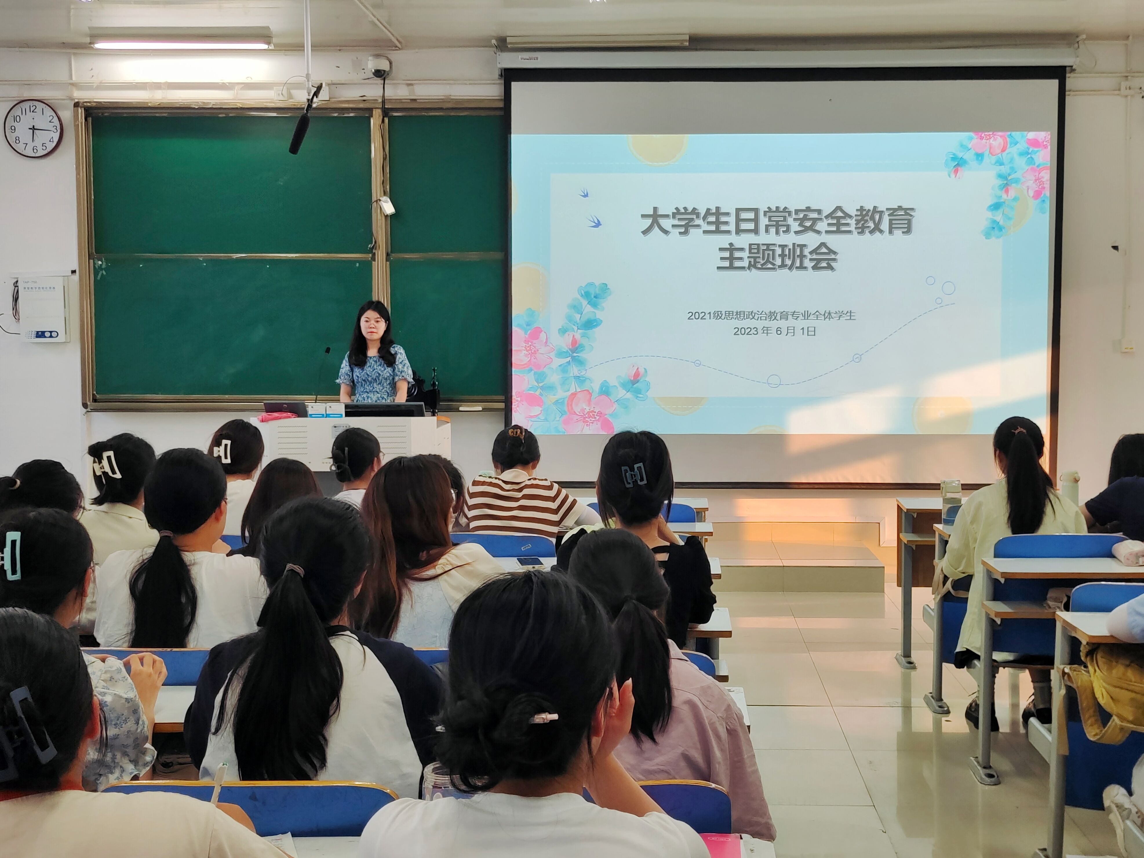 6月1日下午,永利集团官网2021级思想政治教育一班、二班在社科楼514教室召开“大学生日常安全教育”主题班会。辅导员高小佳、永利集团官网2021级思想政治教育一班、二班全体成员参与此次会议。会议由辅导员高小佳主持。
