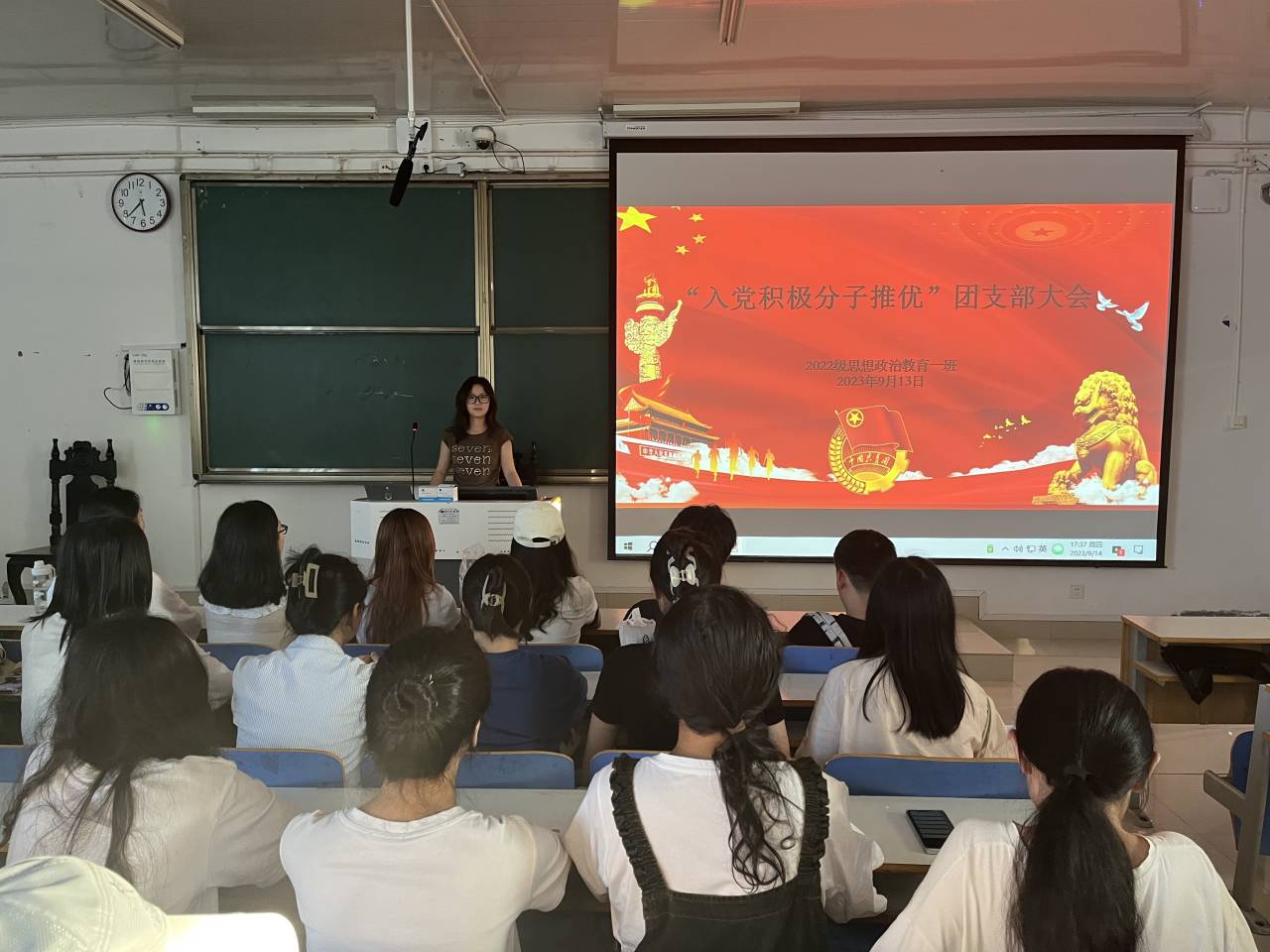 为加强党的队伍建设,切实做好入党推优工作,9月13日下午,永利集团官网2022级思想政治教育一班在社科楼514教室召开“入党积极分子推优”团支部大会。永利集团官网2022级思想政治教育一班班主任王明园和一班全体同学参与本次会议,会议由团支书李佳茹主持。