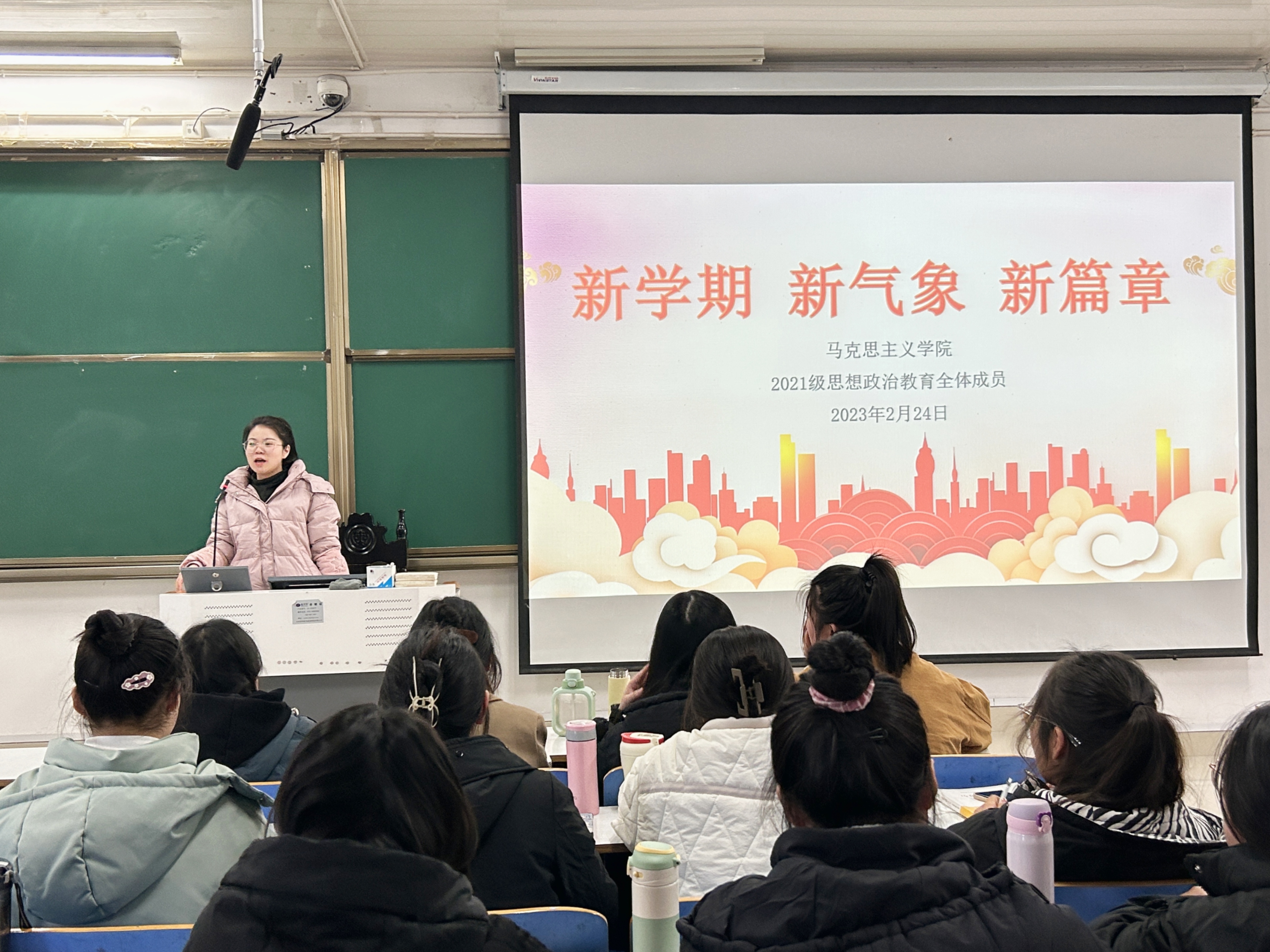 2月24日下午,永利集团官网2021级思想政治教育一班、二班在社科楼514教室召开“新学期、新气象、新篇章”主题班会。辅导员高小佳以及2021级思想政治教育全体成员共同参加本次班会。班会由辅导员高小佳主持。