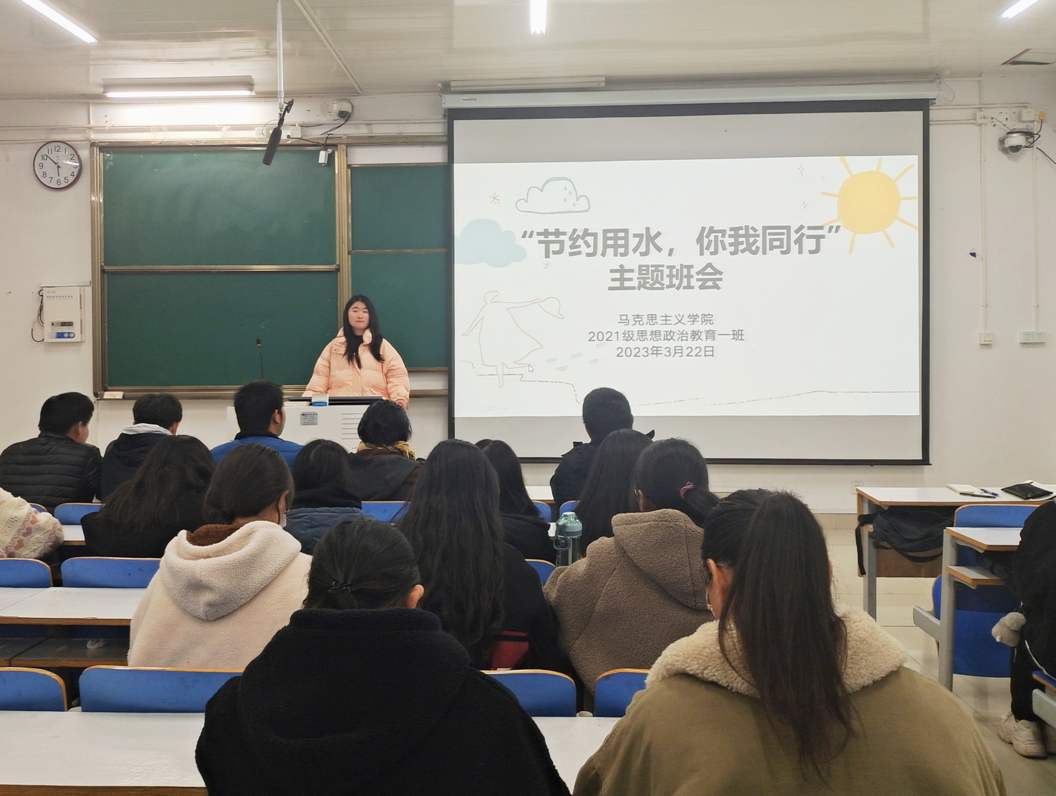 为培育学生养成节约用水的良好习惯,树立生态环境保护意识。3月22日下午,永利集团官网2021级思想政治教育一班在社科楼514教室召开“节约用水,你我同行”主题班会。2021级思想政治教育一班全体成员共同参与本次班会。班会由副班长雷敏主持。