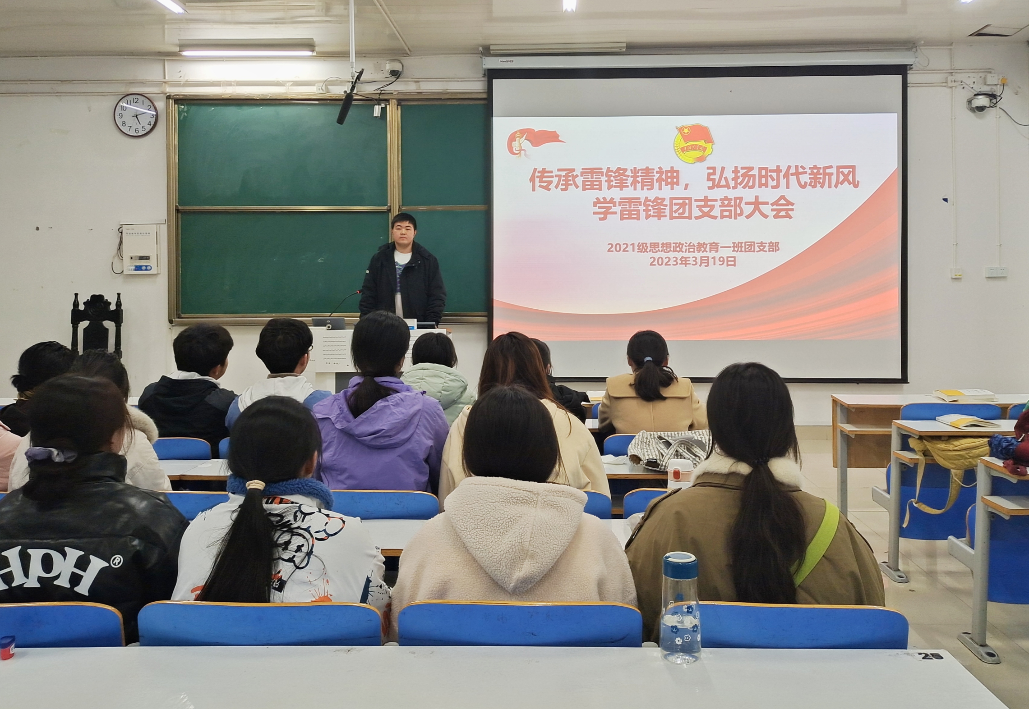 3月19日下午,永利集团官网2021级思想政治教育一班在社科楼515教室召开“传承雷锋精神,弘扬时代新风”学雷锋团支部大会。2021级思想政治教育一班全体团员共同参加了本次会议。会议由团支书戴翰林主持。