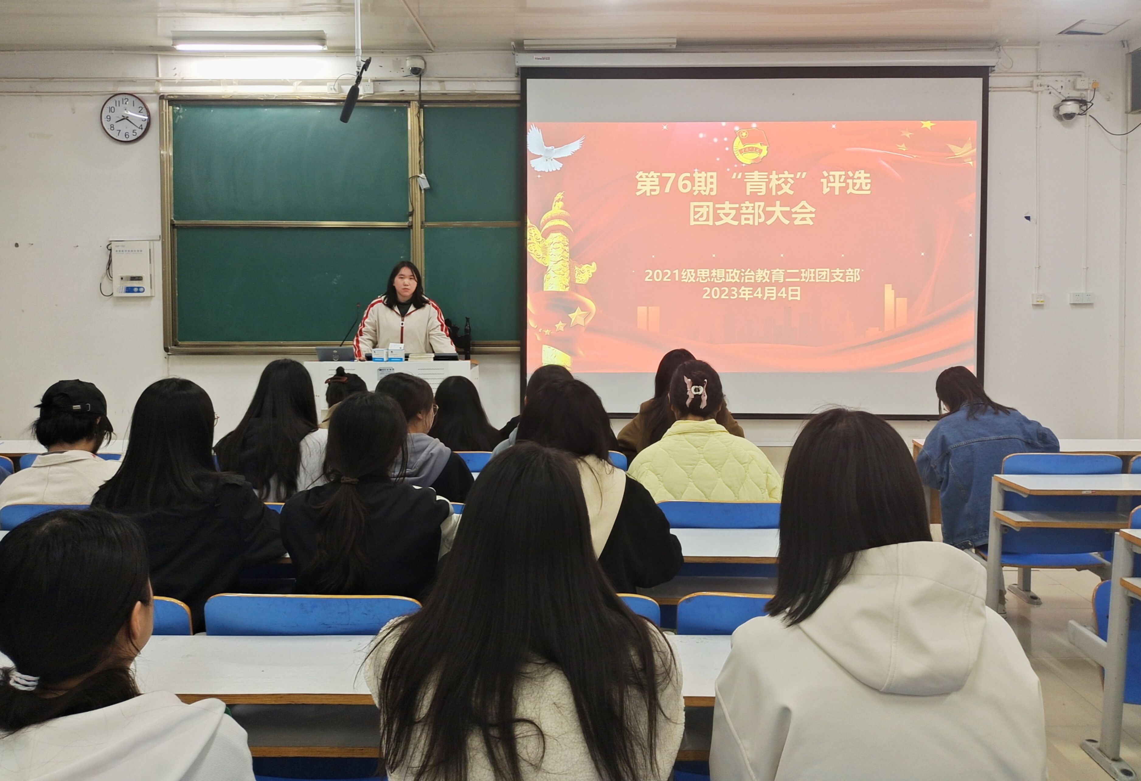 4月4日下午,永利集团官网2021级思想政治教育二班在社科楼514教室召开第76期“青校”评选团支部大会。2021级思想政治教育二班全体团员参加此次会议。会议由团支书王婧欣主持。