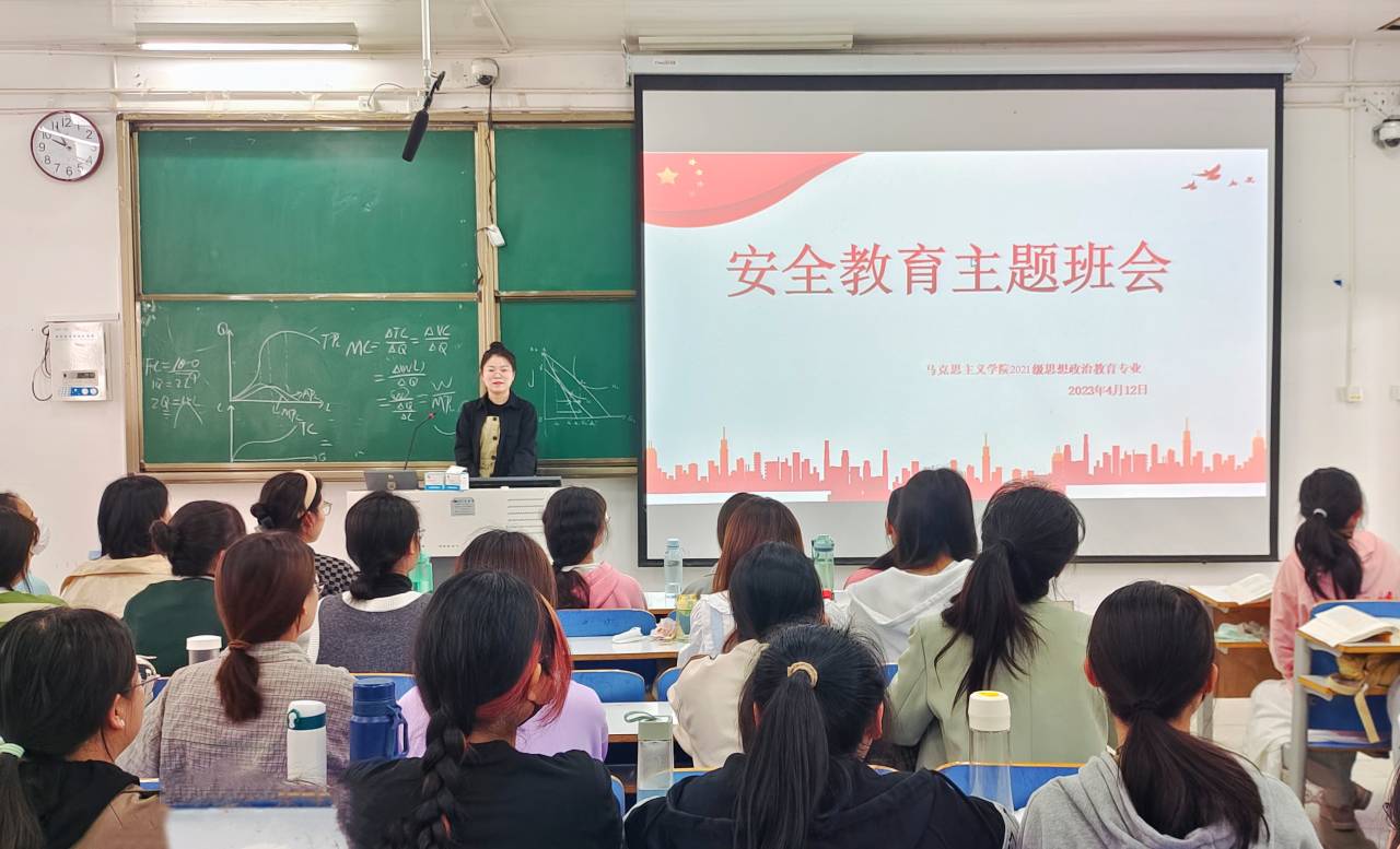 为进一步维护校园安全,增强学生安全意识,4月12日上午,永利集团官网2021级思想政治教育一班、二班在社科楼515教室召开安全教育主题班会。辅导员高小佳以及2021级思想政治教育全体成员共同参加,班会由辅导员高小佳主持。