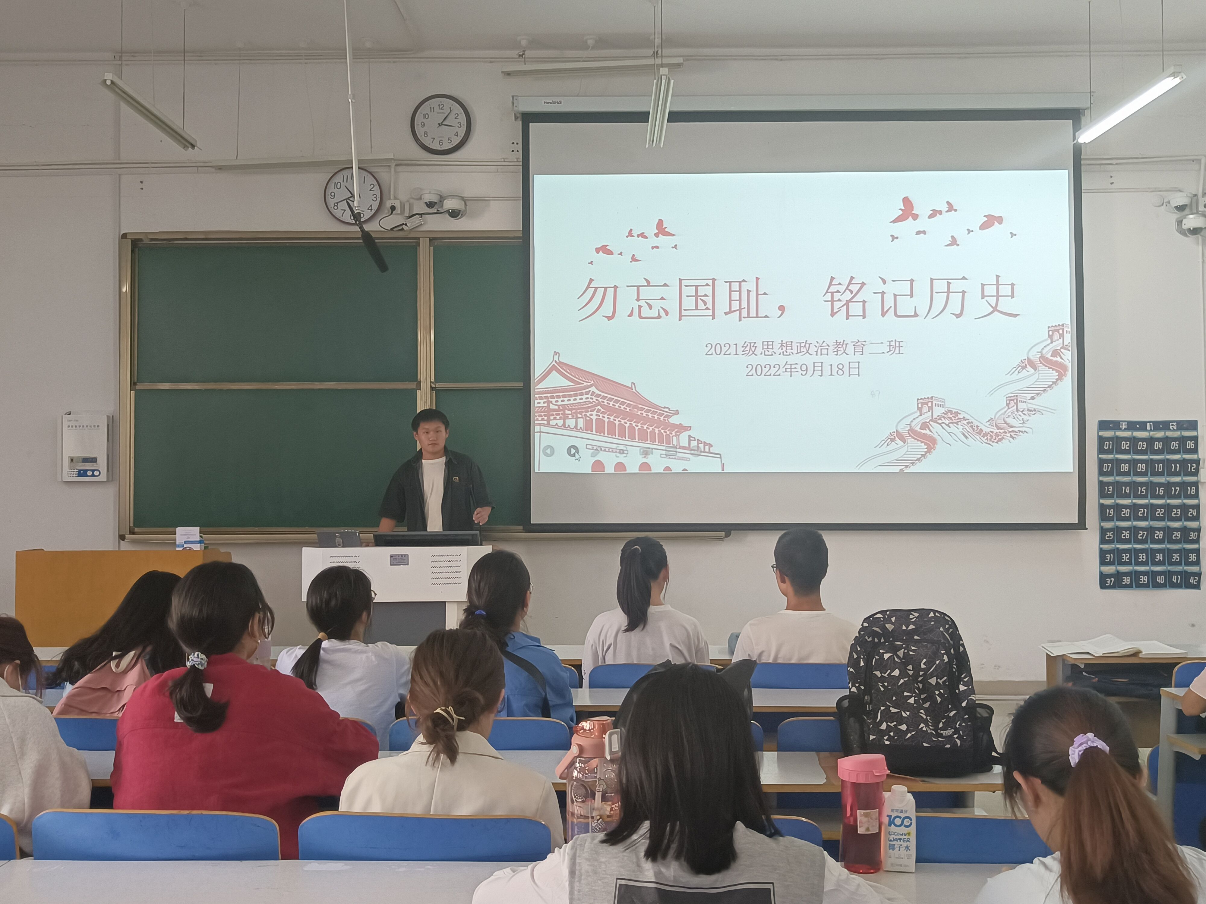 9月18日上午,永利集团官网2021级思想政治教育二班在社科楼514教室召开“勿忘国耻,铭记历史”主题班会。2021级思想政治教育二班全体成员参加此次班会。班会由副班长任振豪主持。