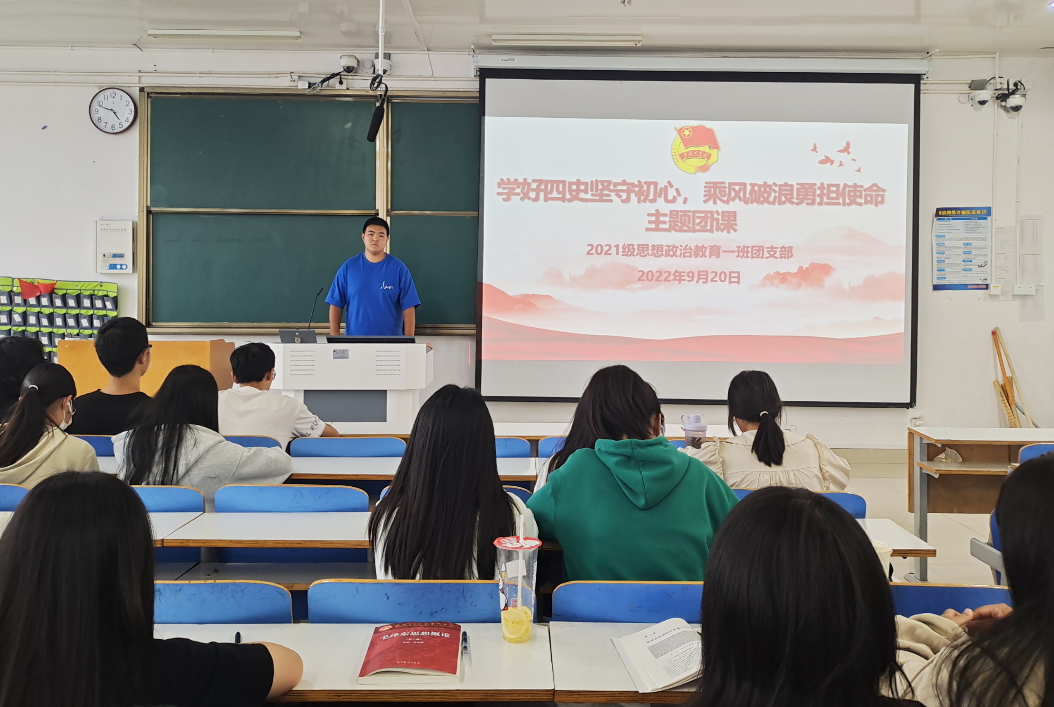 9月20日下午,永利集团官网2021级思想政治教育一班在社科楼514教室召开“学好四史坚守初心,乘风破浪勇担使命”主题团课。2021级思想政治教育一班全体团员共同参加了本次团课,团课由团支书戴翰林主持。