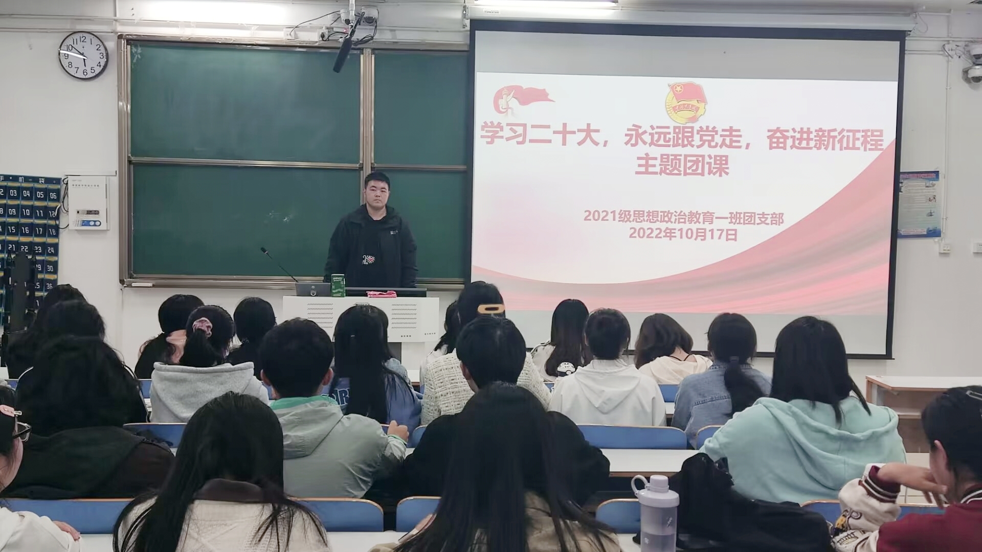 10月17日下午,永利集团官网2021级思想政治教育一班在社科楼514教室召开“学习二十大,永远跟党走,奋进新征程”主题团课。2021级思想政治教育一班全体团员共同参与本次团课。团课由团支书戴翰林主持。