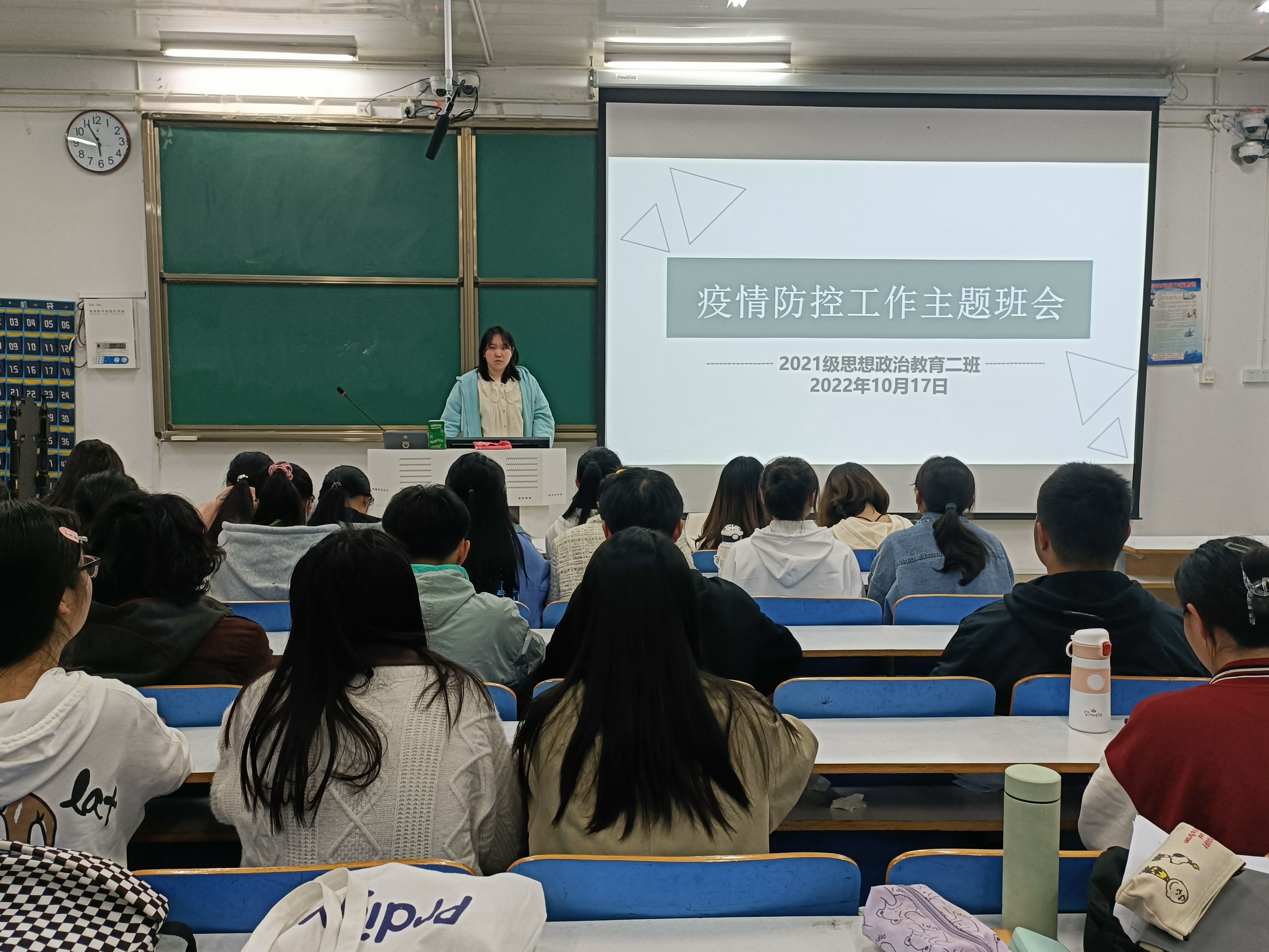 10月17日上午,永利集团官网2021级思想政治教育二班在社科楼514教室召开疫情防控工作主题班会。2021级思想政治教育二班全体成员参加此次班会。班会由团支书王婧欣主持。