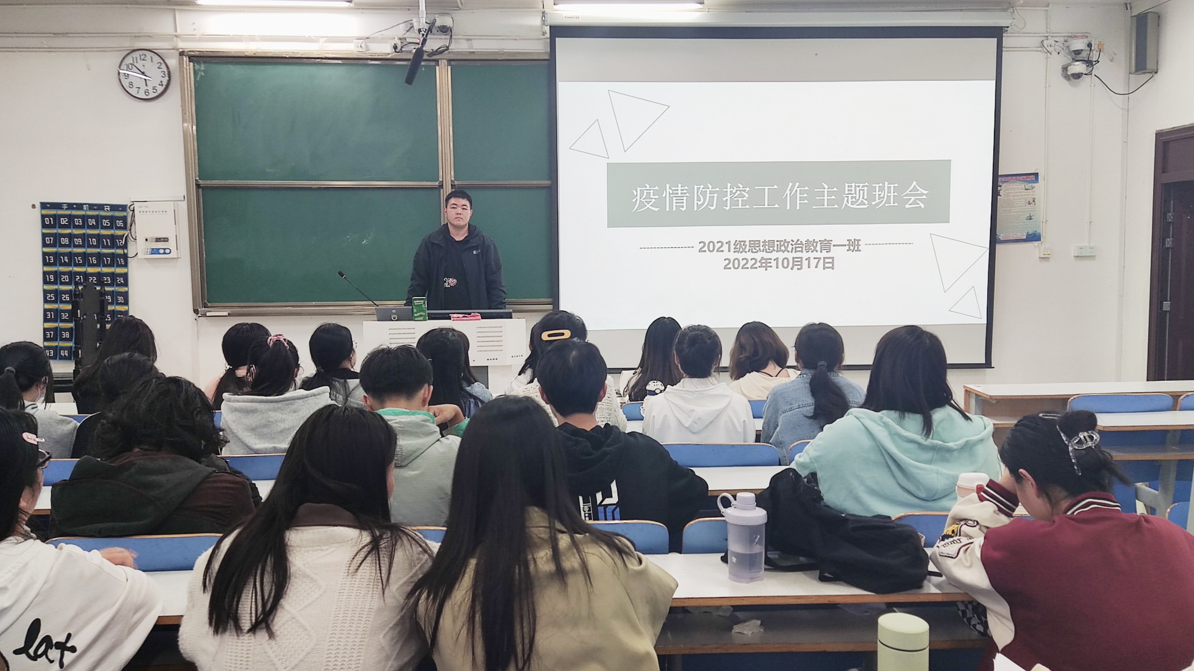 10月17日下午,永利集团官网2021级思想政治教育一班在社科楼514教室召开“疫情防控工作”主题班会。2021级思想政治教育一班全体成员共同参与了本次班会。班会由团支书戴翰林主持。