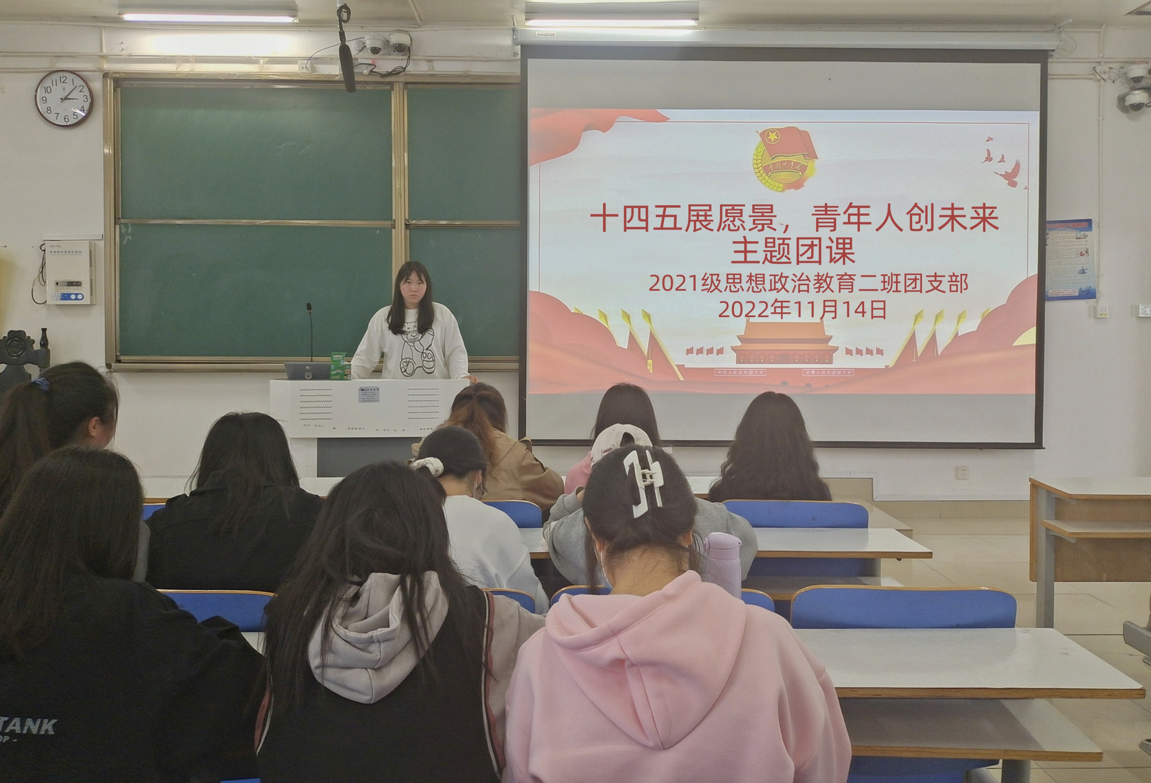 11月14日下午,永利集团官网2021级思想政治教育二班在社科楼514教室召开“十四五展愿景,青年人创未来”主题团课。2021级思想政治教育二班全体成员共同参加本次主题团课。团课由团支书王婧欣主持。