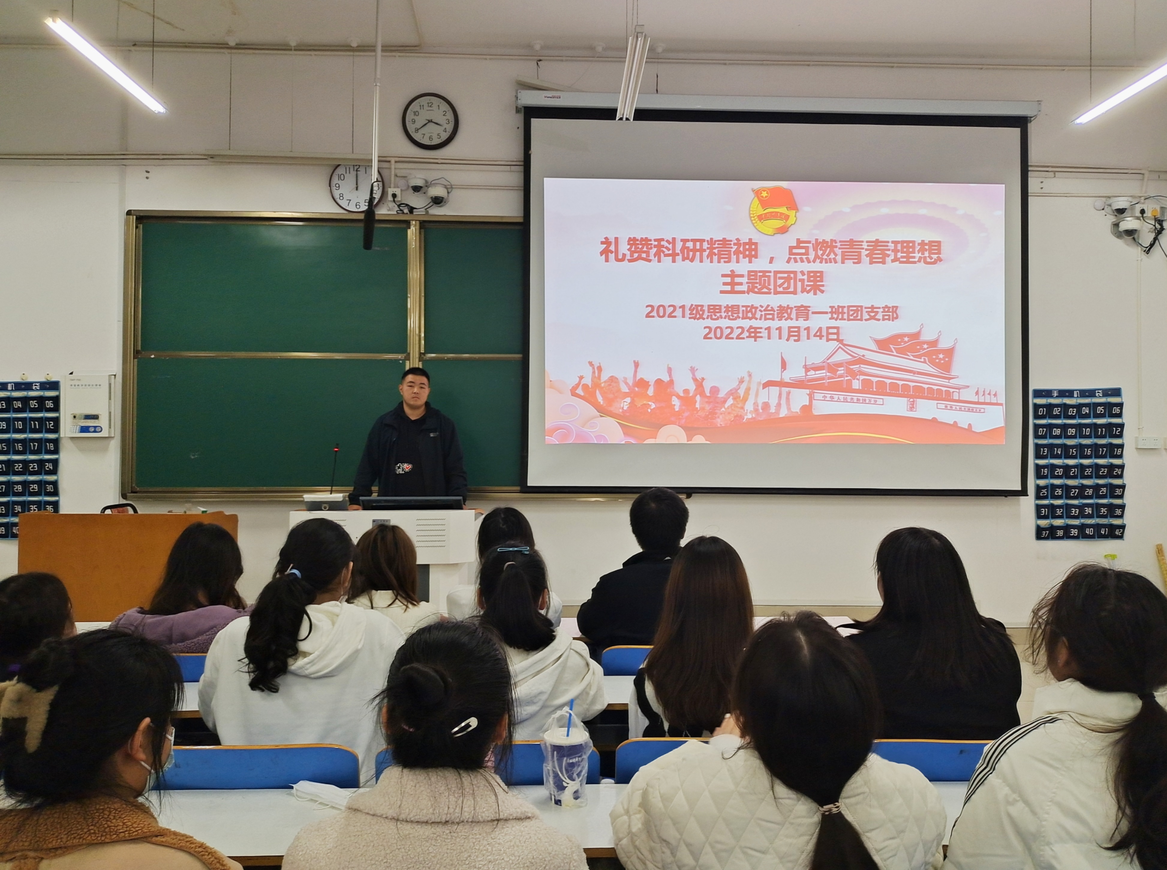 11月14日下午,永利集团官网2021级思想政治教育一班在社科楼416教室召开“礼赞科研精神,点燃青春理想”主题团课。2021级思想政治教育一班全体团员共同参与本次团课。团课由团支书戴翰林主持。