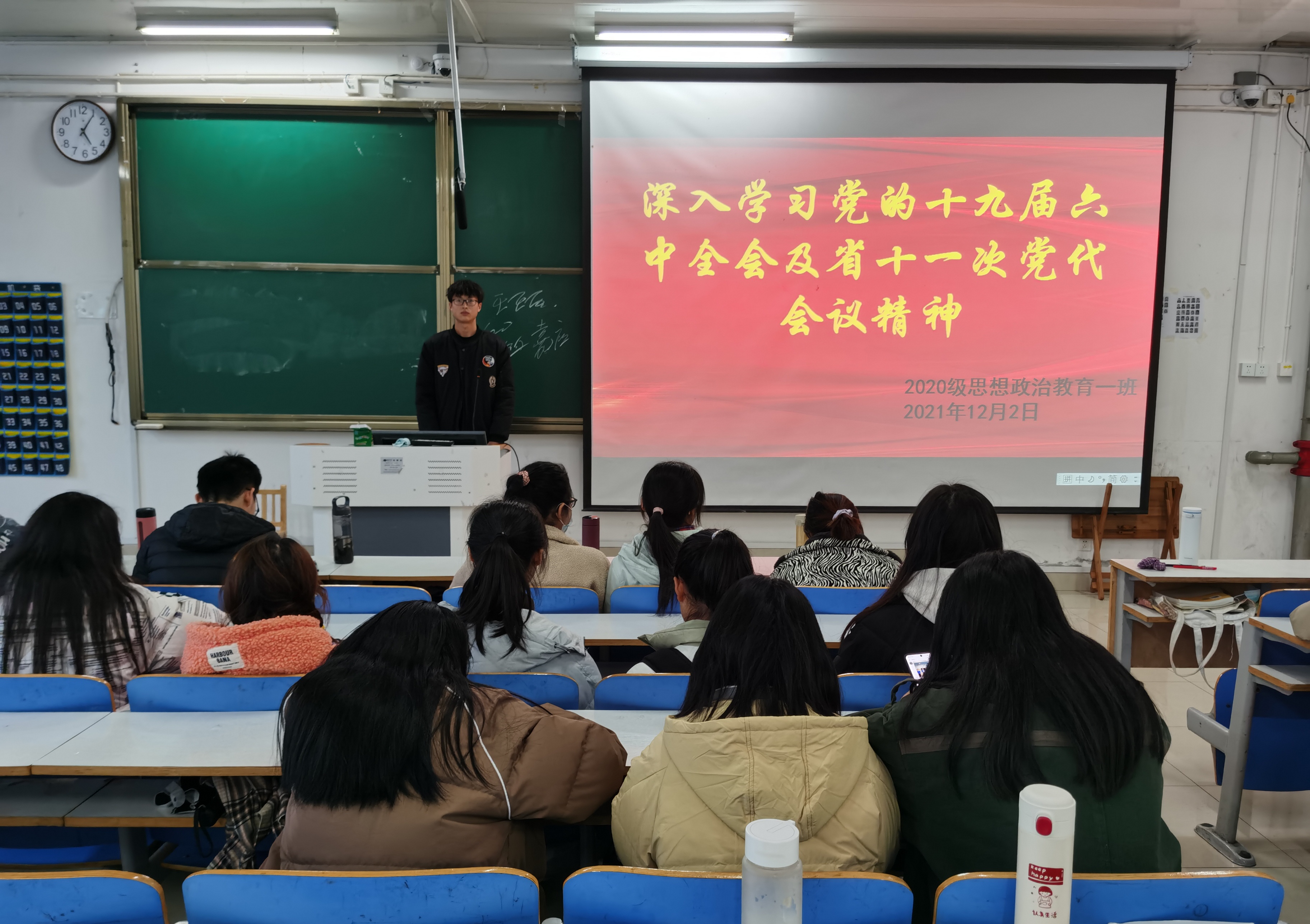 12月2日下午,永利集团官网2020级思想政治教育一班在社科楼514教室开展“深入学习党的十九届六中全会及省十一次党代表会精神”主题团课。2020级思想政治教育一班全体同学参加了本次团课,团课由团支部副书记白帅豪主持。