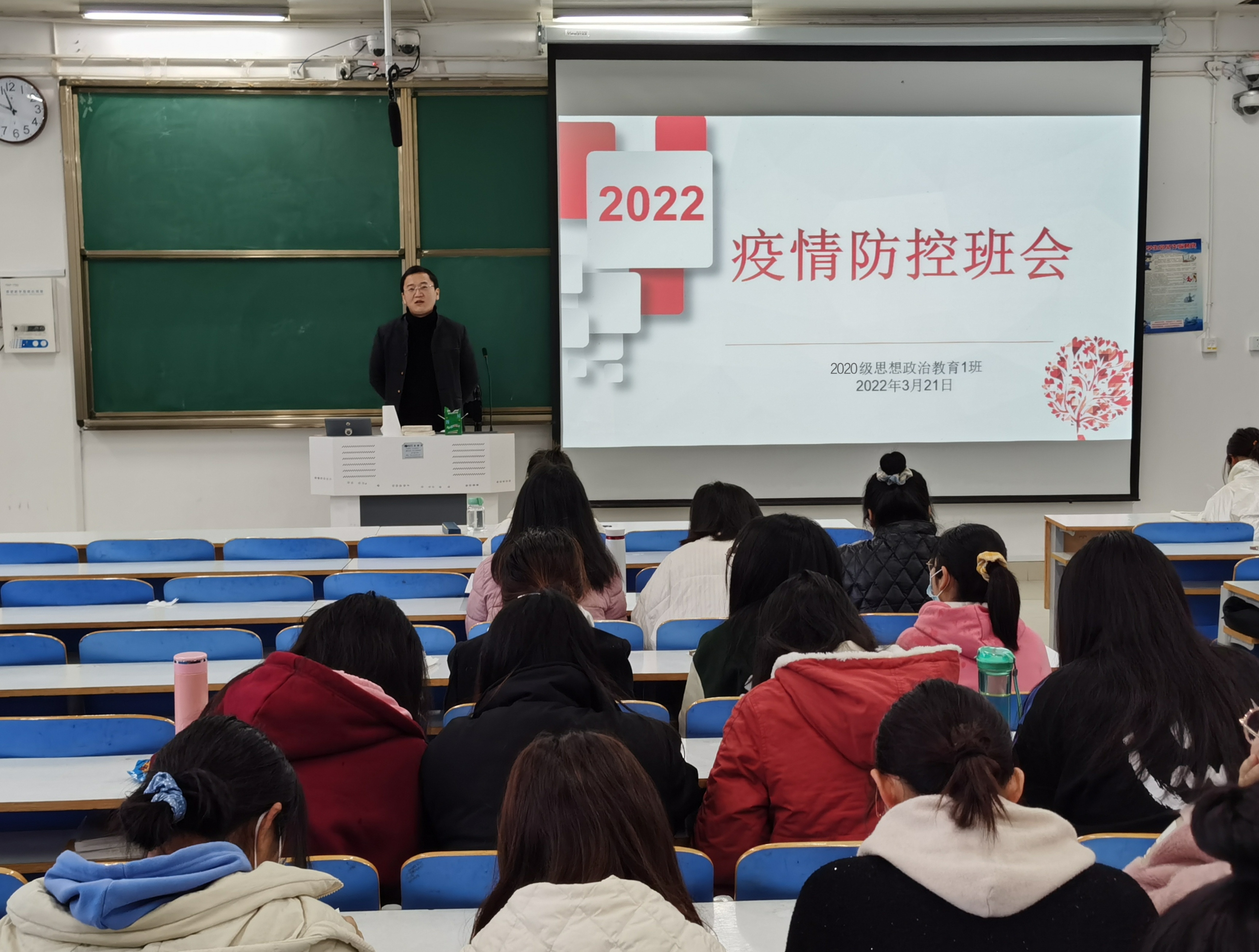 3月21日上午,永利集团官网2020级思想政治教育一班、定向一班在社科楼514教室召开“疫情防控”主题班会。永利集团官网2020级思想政治教育一班、定向一班全体同学参加了本次班会,班会由辅导员曹栋主持。