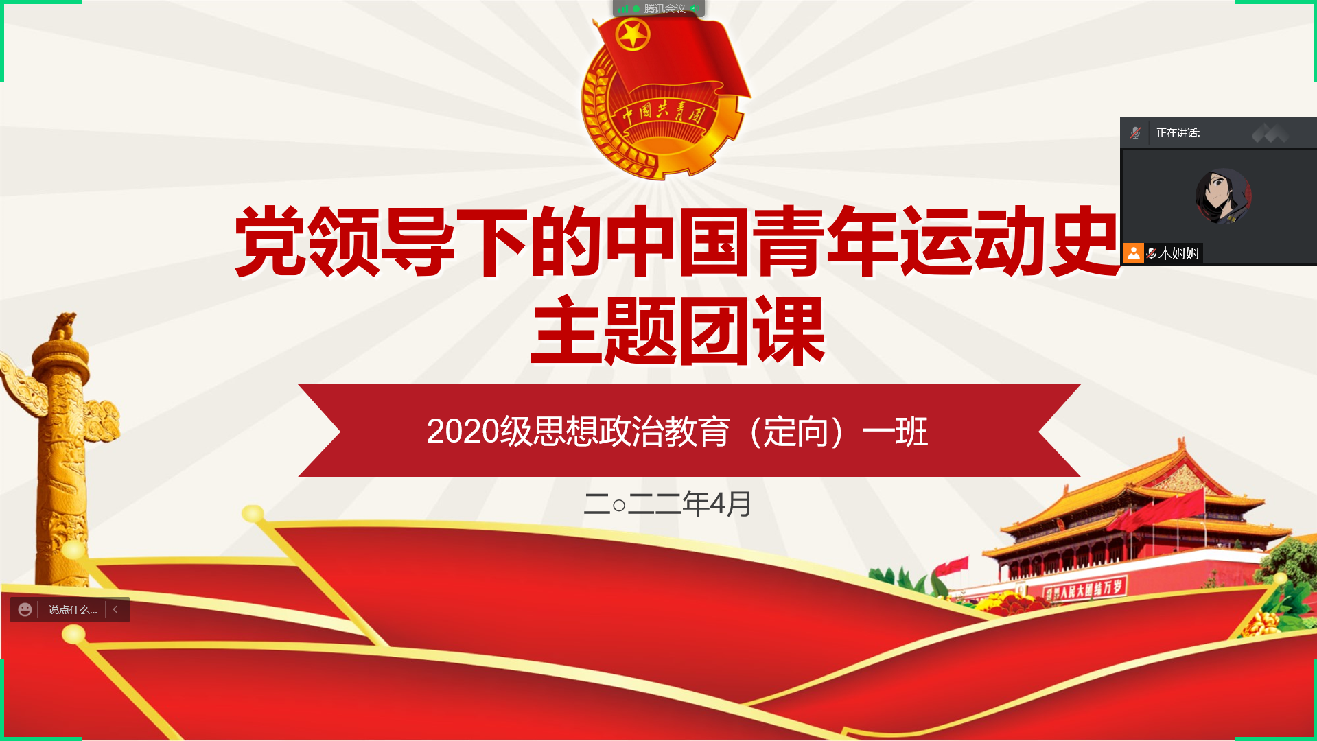 4月26日上午,永利集团官网2020级思想政治教育定向一班通过腾讯会议的形式召开了党领导下的中国青年运动史主题团课。2020级思想政治教育定向一班全体同学共同参加本次会议。