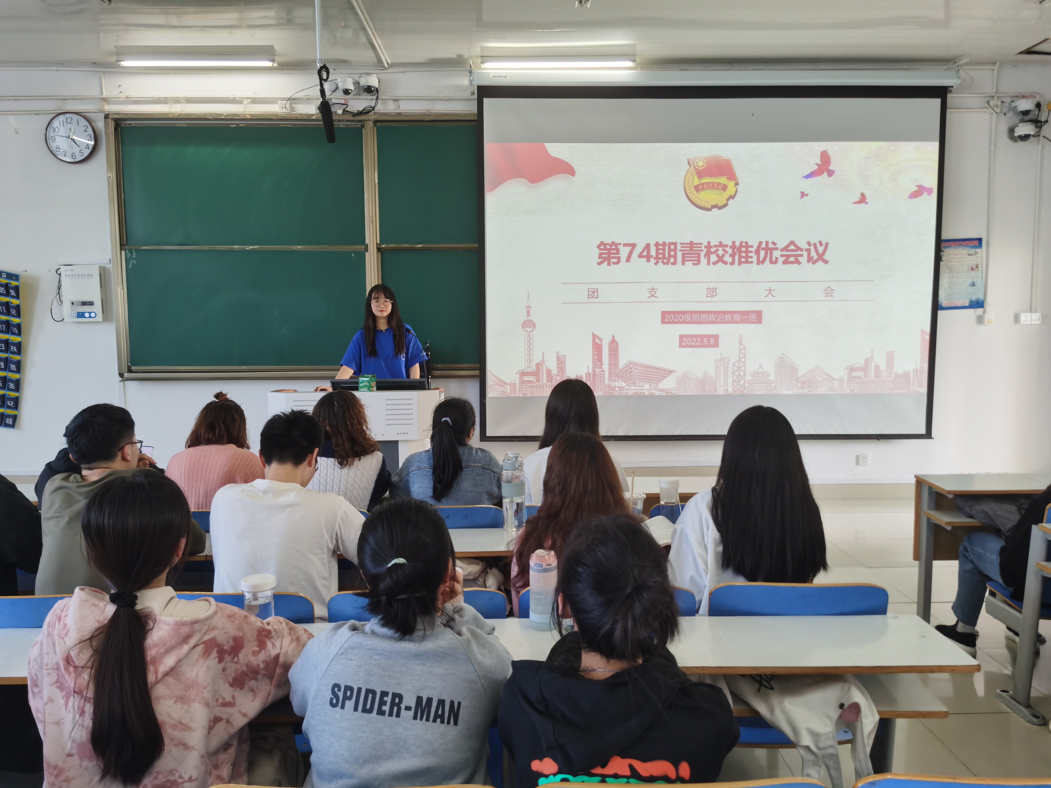 5月8日下午,永利集团官网2020级思想政治教育一班在社科楼514教室召开“第74期青校推优”团支部大会。2020级思想政治教育一班全体团员参加本次推优会议,大会由团支书卢茜雨主持。