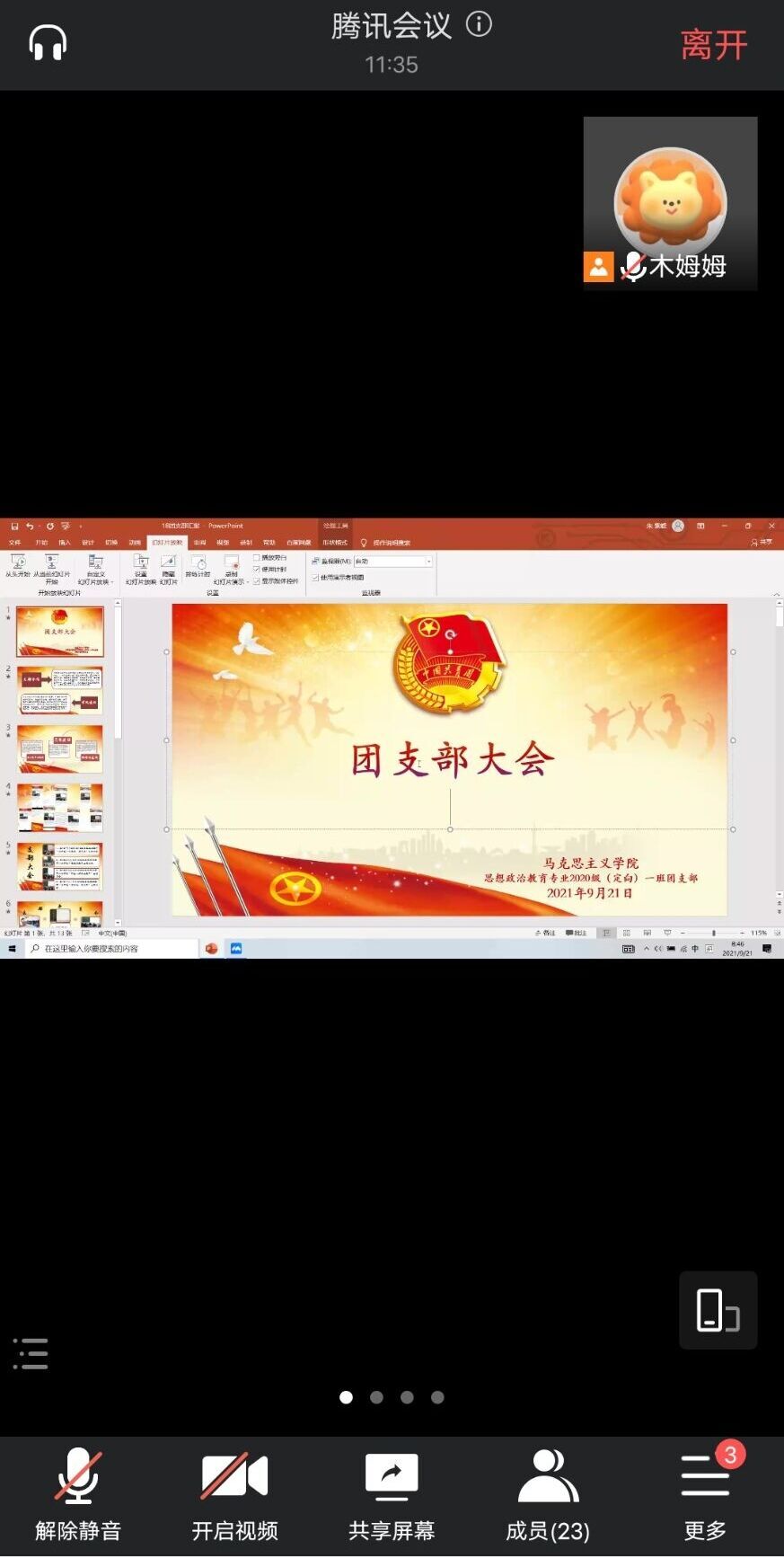 9月21日上午,永利集团官网2020级思想政治教育(定向)一班通过腾讯会议在线上顺利举行了团支部大会。2020级思想政治教育(定向)一班全体学生聆听了此次会议。