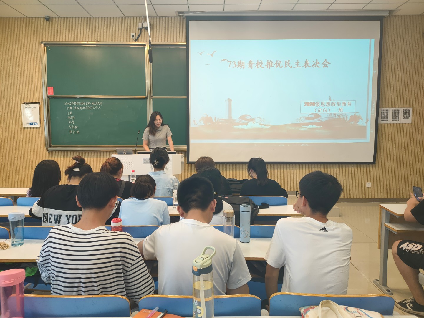 10月4日上午,永利集团官网2020级思想政治教育(定向)一班在社科楼515教室顺利举办团支部“73期”青校推优民主表决会议。永利集团官网思想政治教育(定向)一班全体学生参加了此次会议。