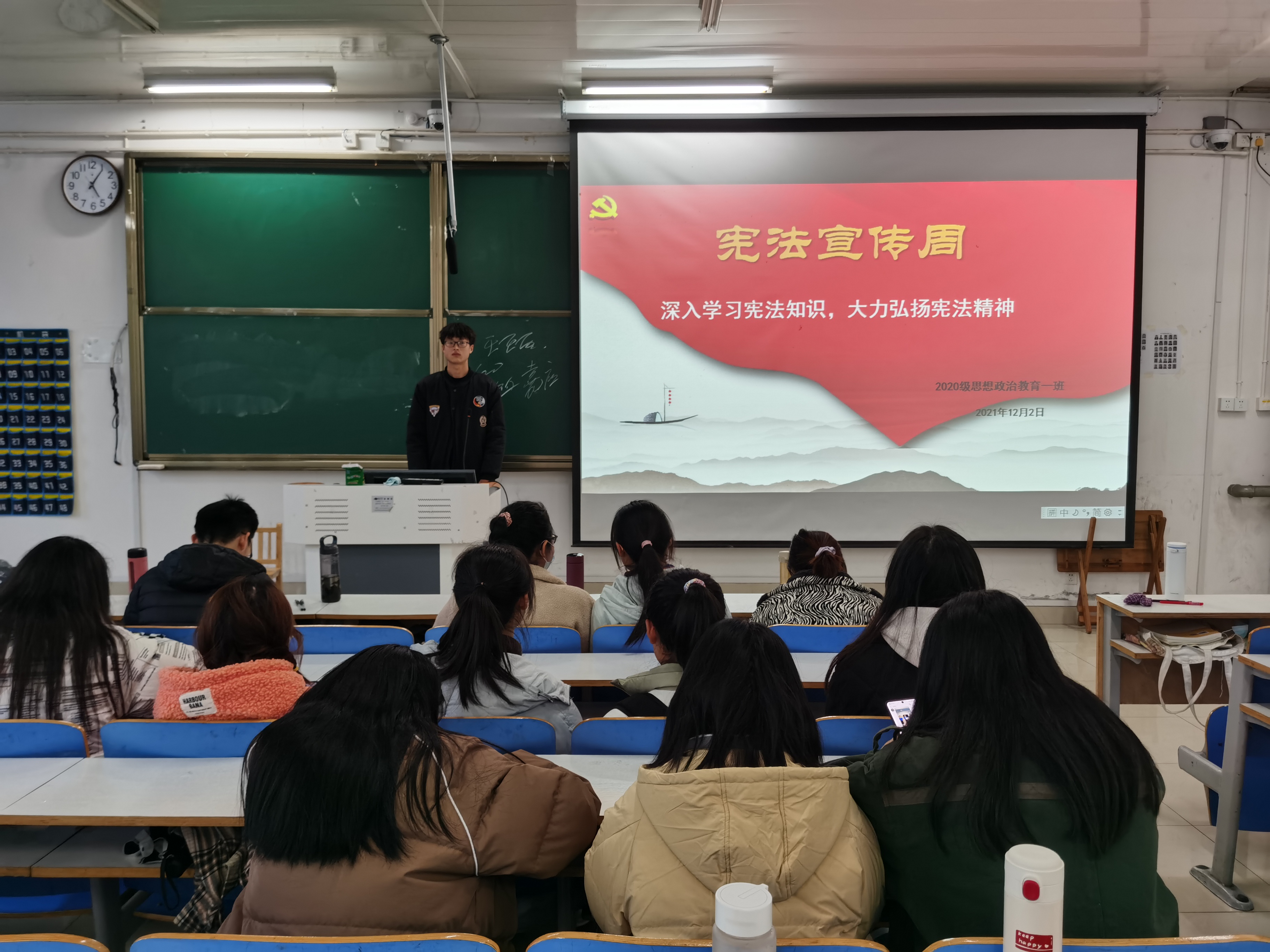 为增强同学们的法治观念,培养法治思维,12月2日下午,永利集团官网2020级思想政治教育一班在社科楼516教室召开“深入学习宪法知识,大力弘扬宪法精神”主题班会。