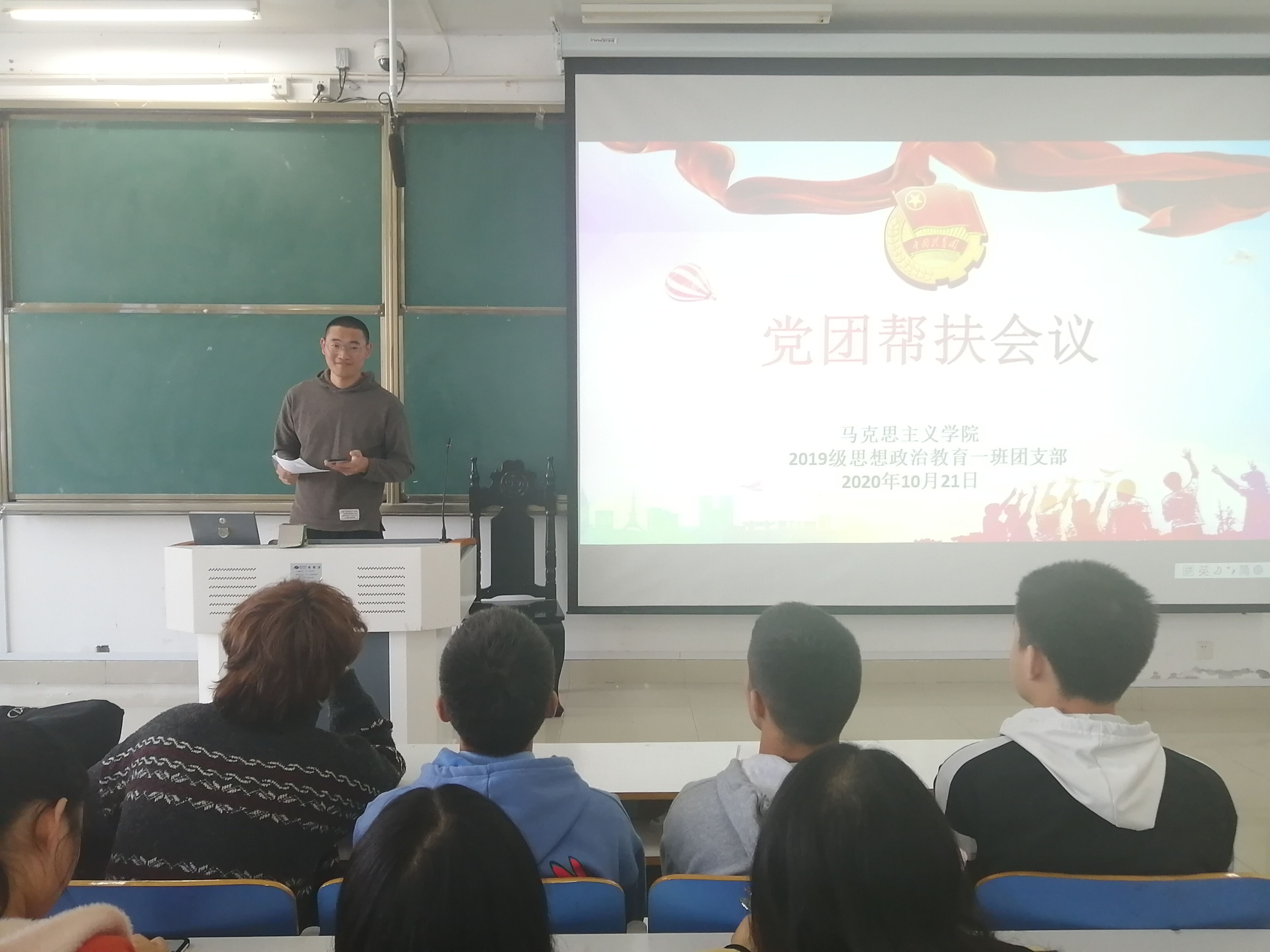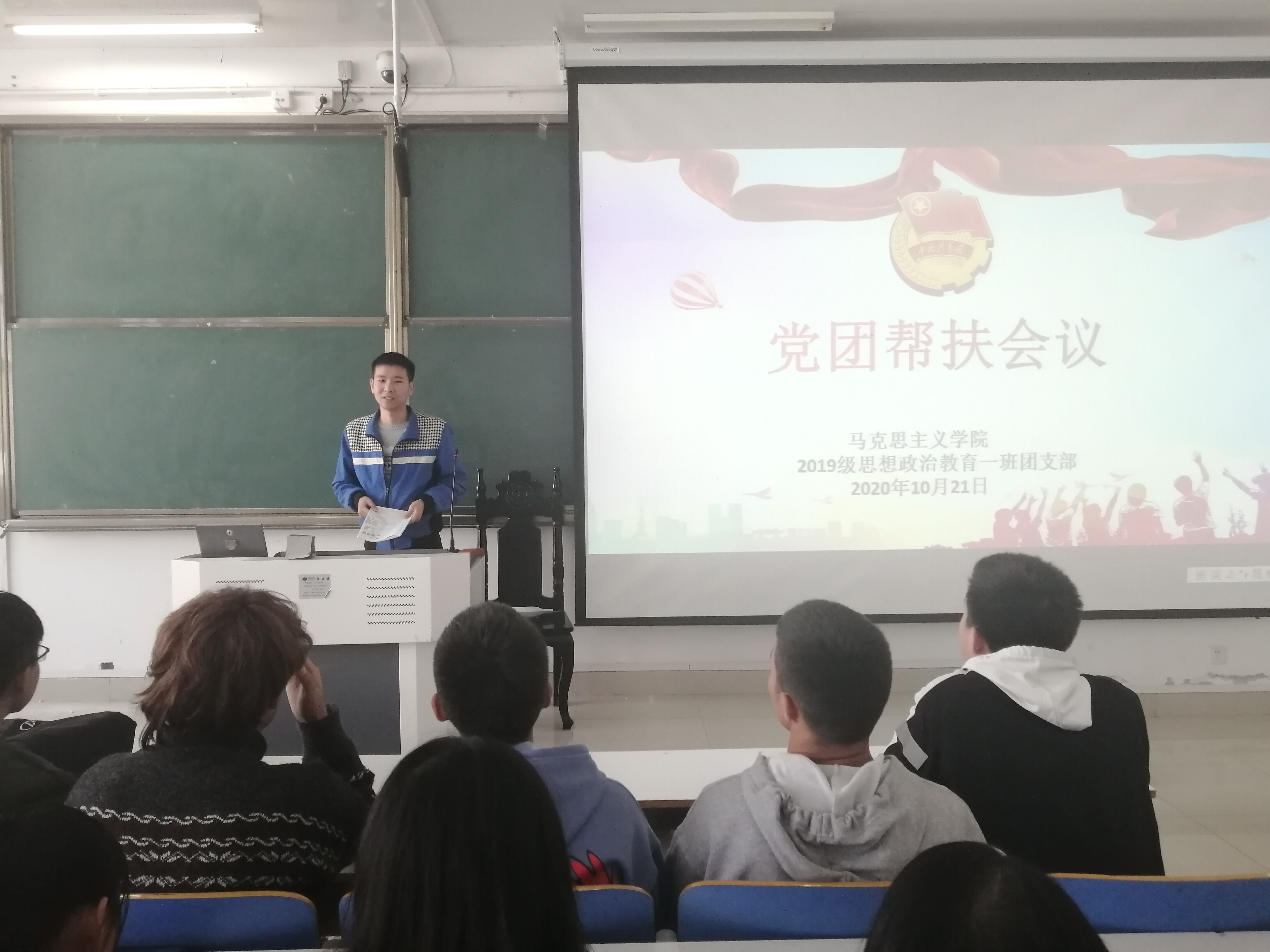 10月21日上午,永利集团官网2019级思想政治教育一班在社科楼514教室召开党团帮扶会。2019级思想政治教育一班全体成员参加本次会议,由团支书贾子漪主持。