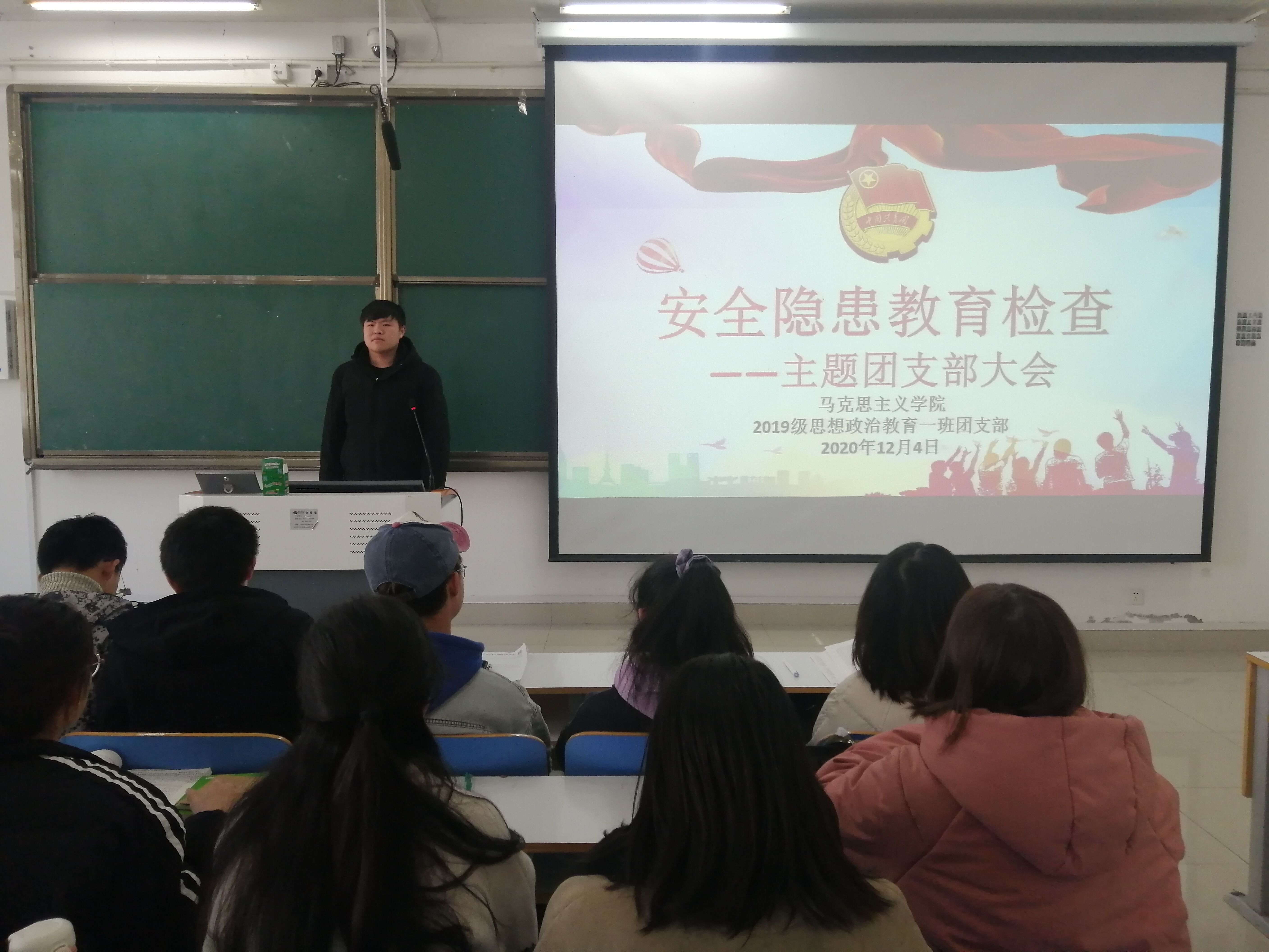 会议伊始,王民向同学们强调了校园安全教育的重要性。他指出:安全教育是提高大学生综合素质的重要内容,也是维持高校治安稳定的基础。接着,他通过播放PPT的形式给同学们列举了几个校园安全事件反例。对此,他提出两点建议:第 一、自觉遵守校规校纪,不使用违规电器;第二、提高警惕,抵制不良贷款。最后,贾子漪总结本次支部大会内容并建议寝室长们于会后排查各自宿舍安全隐患。