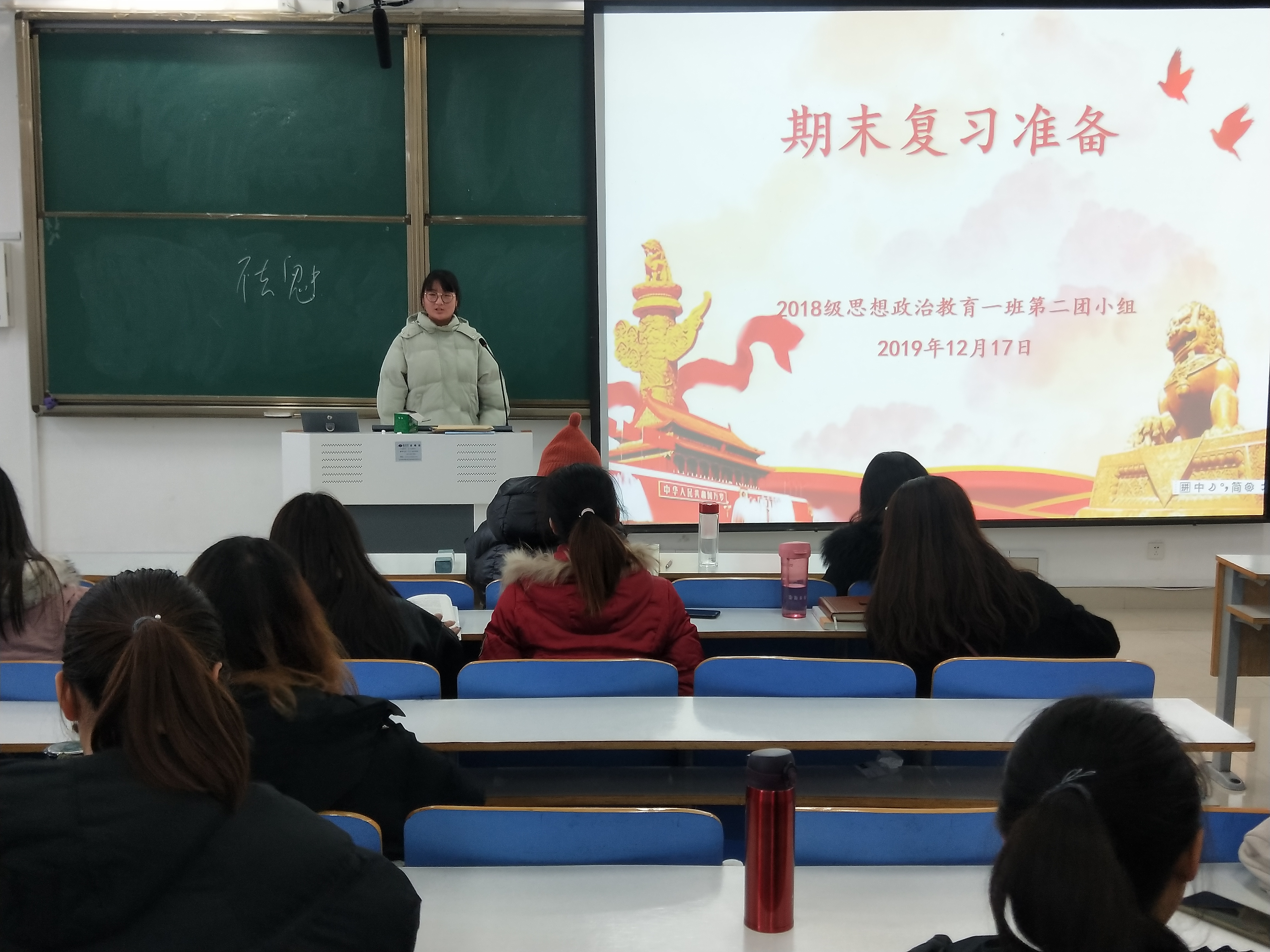 为鼓励同学们积极准备期末考试,做好考前复习规划,12月17日上午,永利集团官网2018级思想政治教育一班第二团小组在社科楼514教室顺利开展“期末复习准备”主题团会。第二团小组全体成员共同参加此次团会。团会由团小组成员布玉丹主持。