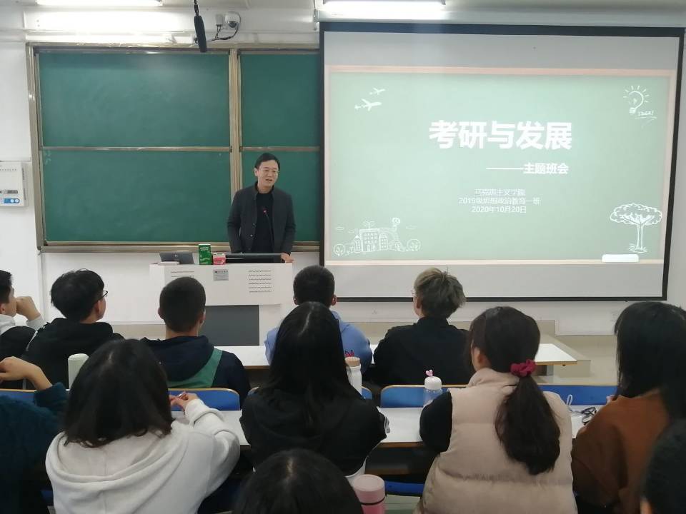 10月20日下午,永利集团官网2019级思想政治教育一班在社科楼514教室召开考研与发展主题班会,2019级思想政治教育一班全体成员参加本次班会,班会由辅导员曹栋主持。