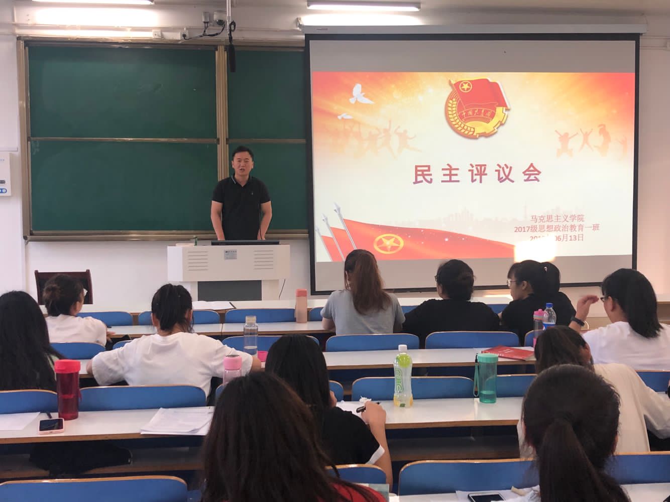 6月13日下午,永利集团官网2017级思想政治教育一班在社科楼514教室开展民主生活评议会。2017级思想政治教育一班全体同学参加此次班会。班会由班长邹创主持。