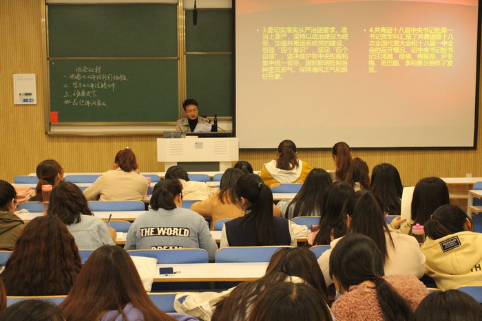 为提高共青团员的思想觉悟,增强共青团员对共青团的归属感,11月9日晚,永利集团官网2017级思想政治教育一班全体同学在社科楼514教室进行“学习“7· 2”讲话精神”活动,活动由团支书谢文静主持。