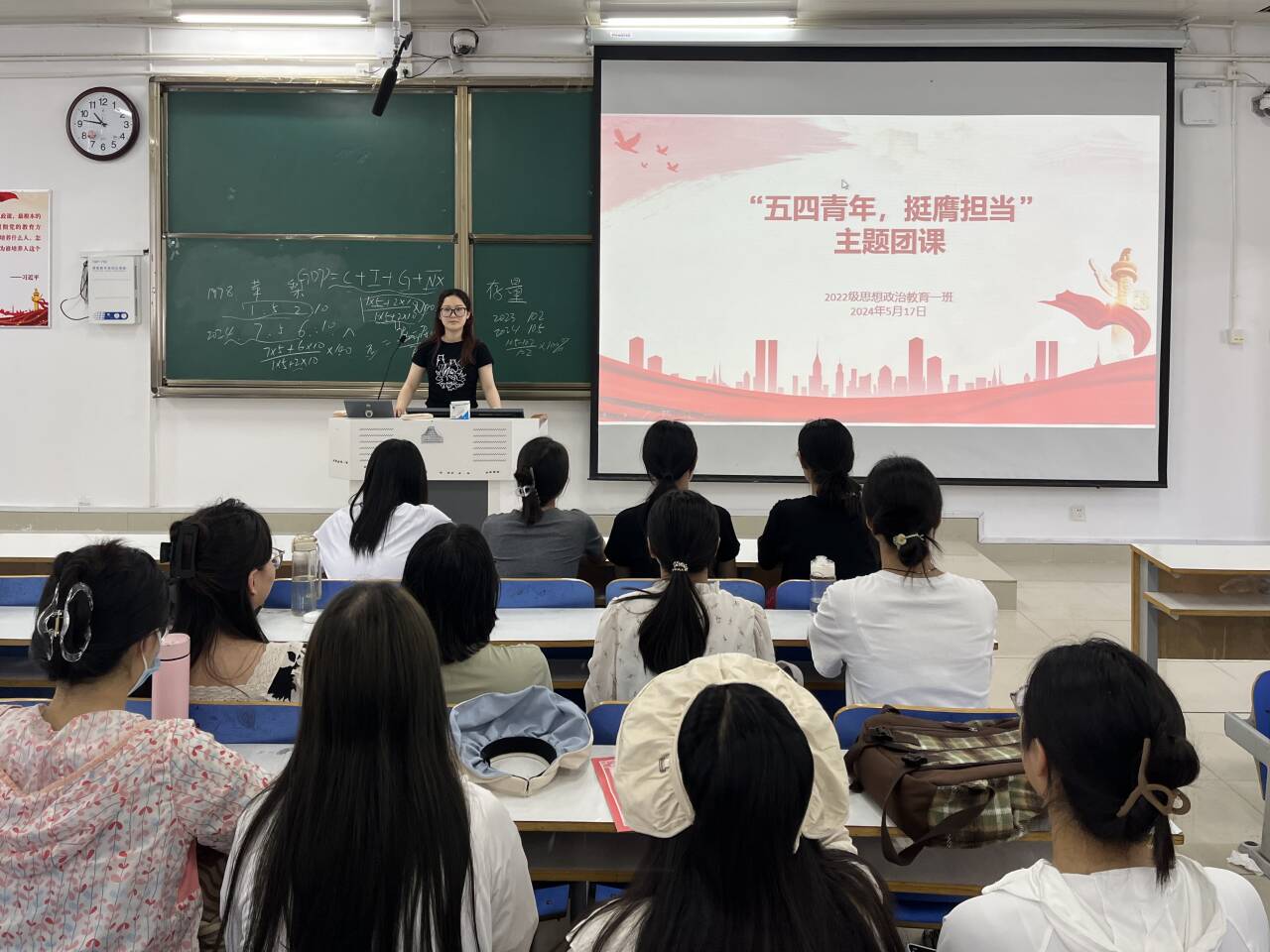 为弘扬五四精神,汇聚奋斗力量,5月17日上午,永利集团官网2022级思想政治教育一班在社科楼514教室开展“五四青年,挺膺担当”主题团课,永利集团官网2022级思想政治教育一班全体同学共同参与本次团课。团课由团支书李佳茹主持。