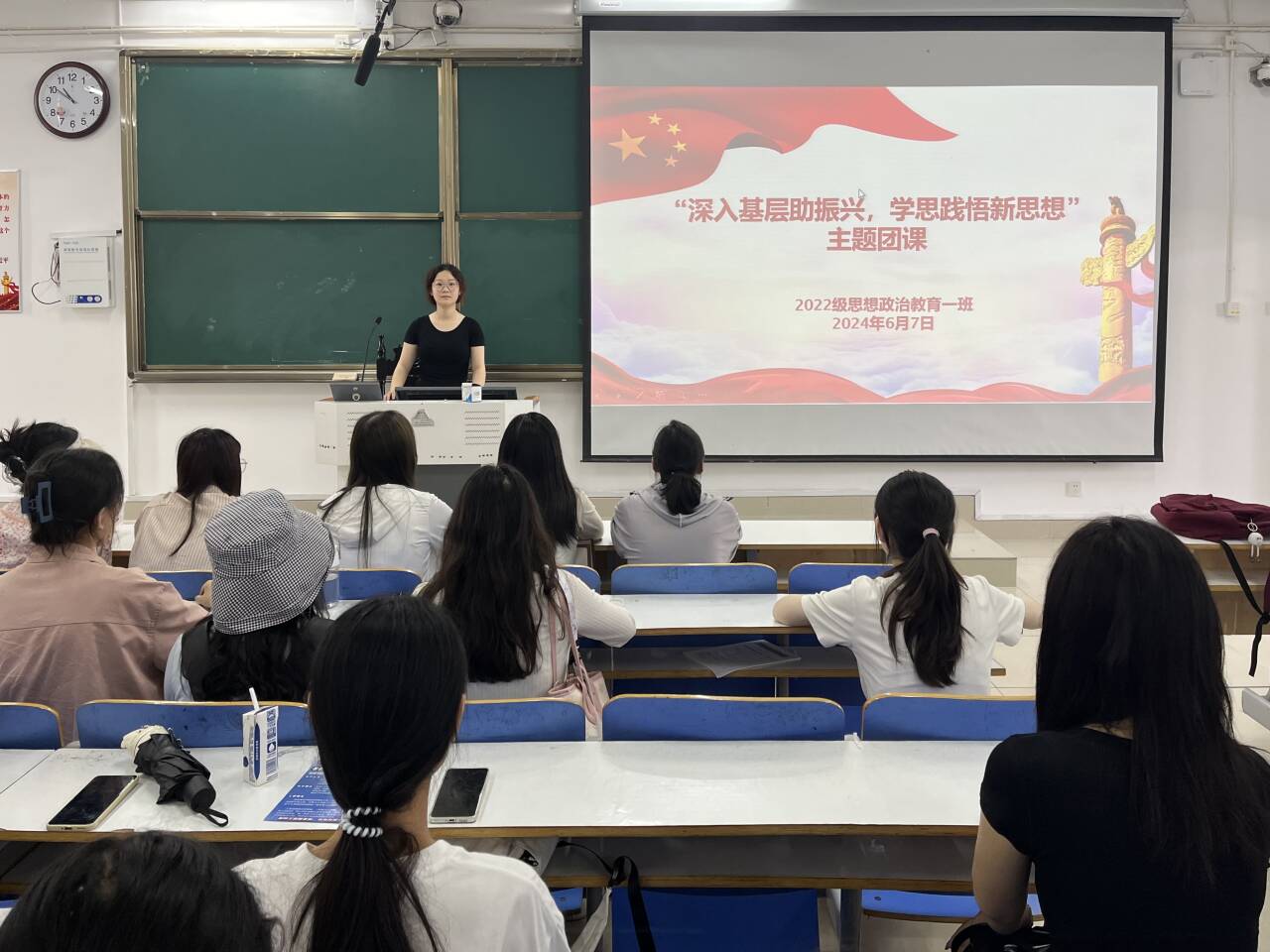 为进一步加强同学们的思想教育,6月7日上午,永利集团官网2022级思想政治教育一班在社科楼514教室开展“深入基层助振兴,学思践悟新思想”主题团课,永利集团官网2022级思想政治教育一班全体同学共同参与本次团课,团课由团支书李佳茹主持。