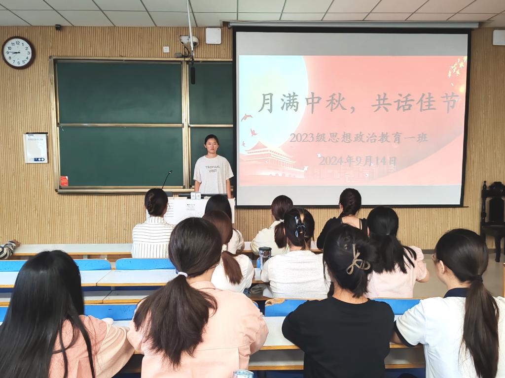 桂香万里,情暖中秋。9月14日下午,在传统节日中秋节来临之际,永利集团官网2023级思想政治教育一班在社科楼515教室召开“月满中秋,共话佳节”主题班会。2023级思想政治教育一班全体同学参与本次班会,班会由班长张卓主持。