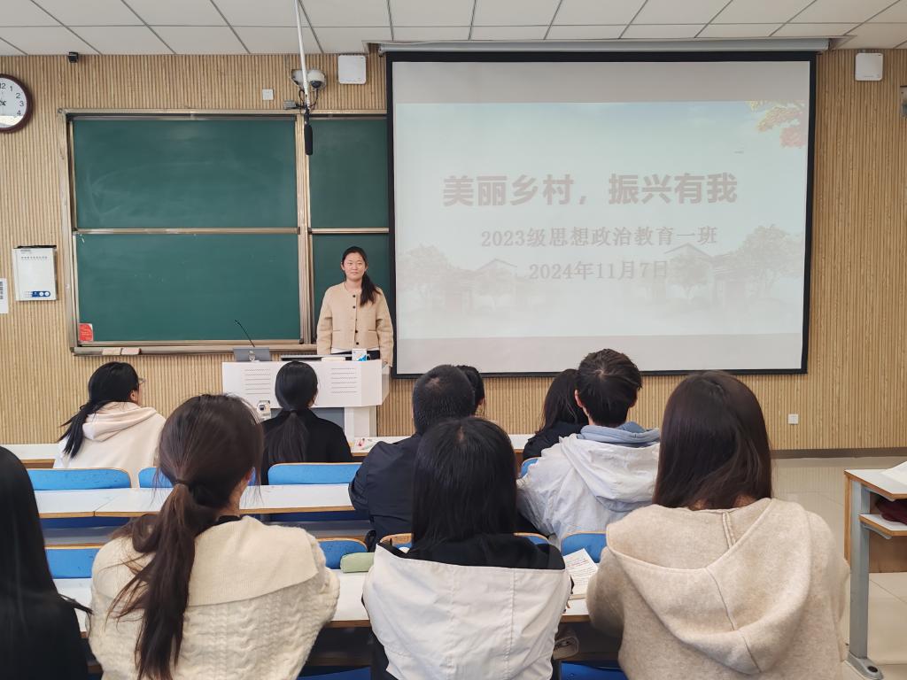 11月7日下午,永利集团官网2023级思想政治教育一班在社科楼515教室召开“乡村振兴,青年先行”主题团课。永利集团官网2023级思想政治教育一班全体成员参与本次团课,团课由团支书张卓主持。