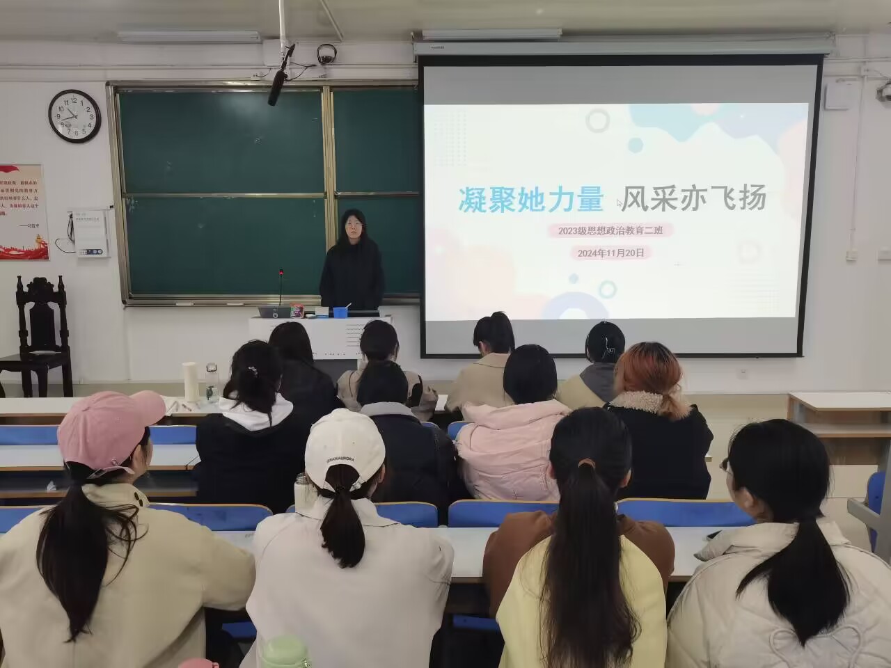 为进一步宣传女性自尊、自信、自立、自强精神,宣扬女性独立精神,11月20日下午,永利集团官网2023级思想政治教育二班在社科楼515教室开展“凝聚她力量,风采亦飞扬”主题班会。本次主题班会由班长王慜初主持,全体二班同学参加。