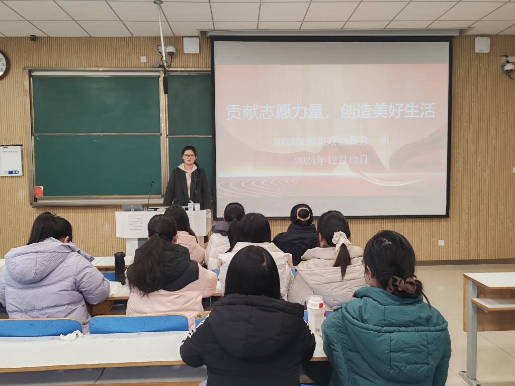 为弘扬志愿服务精神,强化我班学子的社会责任意识,12月12日上午,永利集团官网2023级思想政治教育一班在社科楼515教室召开“聚此国庆,与时偕行”主题团课。2023级思想政治教育一班全体同学参与本次团课,团课由团支书张卓主持。