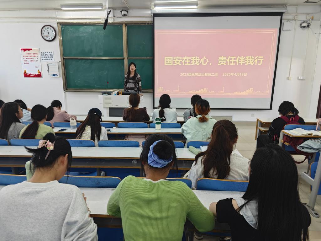 为进一步宣传全民国家安全教育日,普及国家安全教育,4月18日上午,永利集团官网2023级思想政治教育二班在社科楼515教室开展“国安在我心,责任伴我行”主题团课,本次团课由团支书王慜初主持,全体二班同学参加。