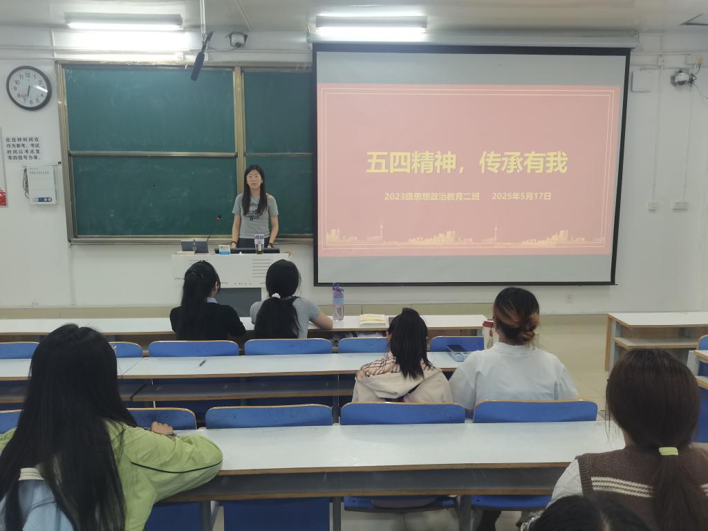 为进一步传承并弘扬五四精神,5月17日上午,永利集团官网2023级思想政治教育二班在社科楼515教室开展“五四精神,传承有我”主题团课,本次团课由团支书王慜初主持,全体二班同学参加。