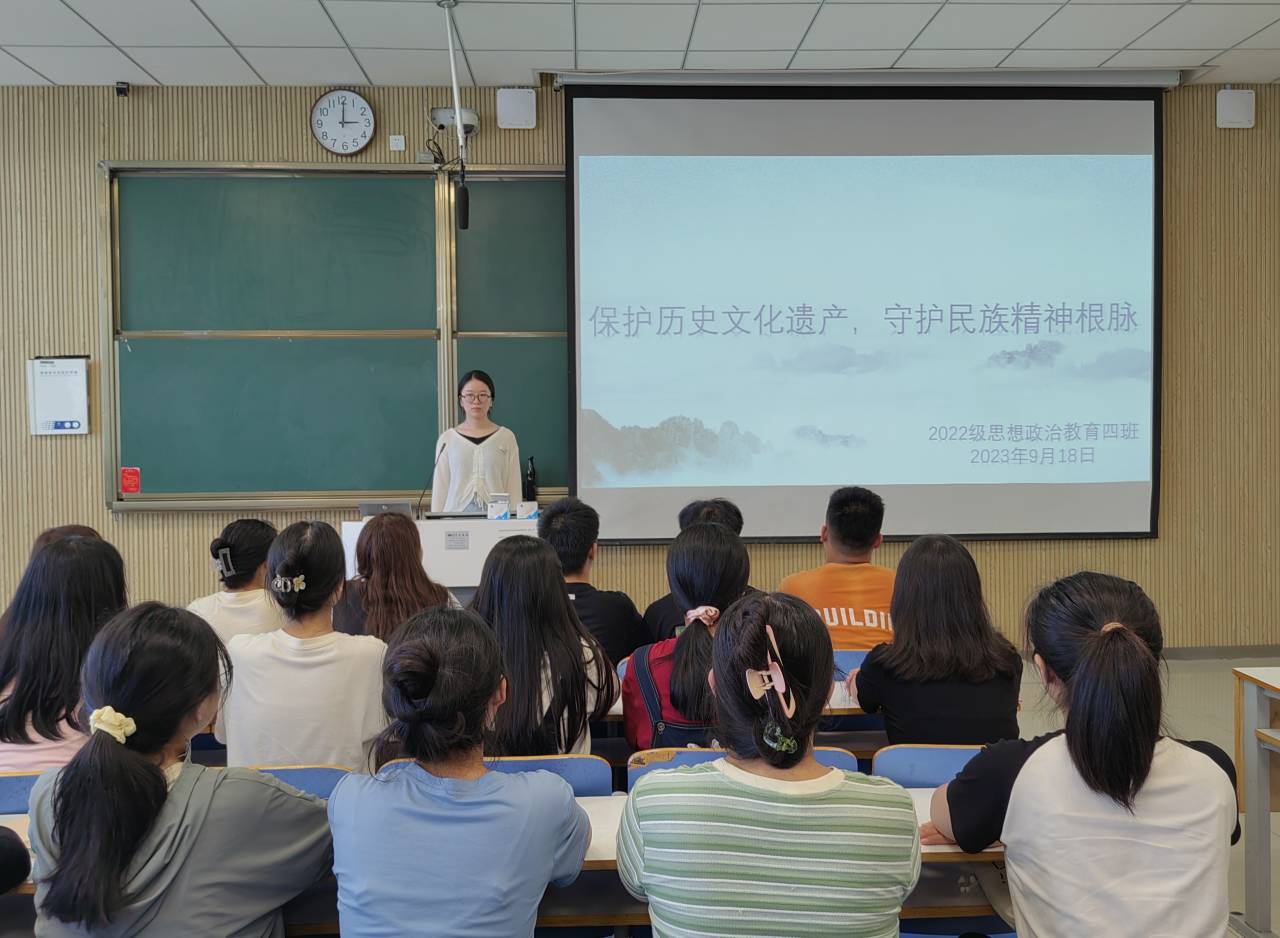 为进一步提高大家对历史文化遗产的保护意识,营造文化遗产保护的良好社会氛围,9月18日下午,永利集团官网2022级思想政治教育四班在社科楼515教室召开“保护历史文化遗产,守护民族精神根脉”主题团课。永利集团官网2022级思想政治教育四班全体同学参与本次班会。团课由团支书牛志杰主持。