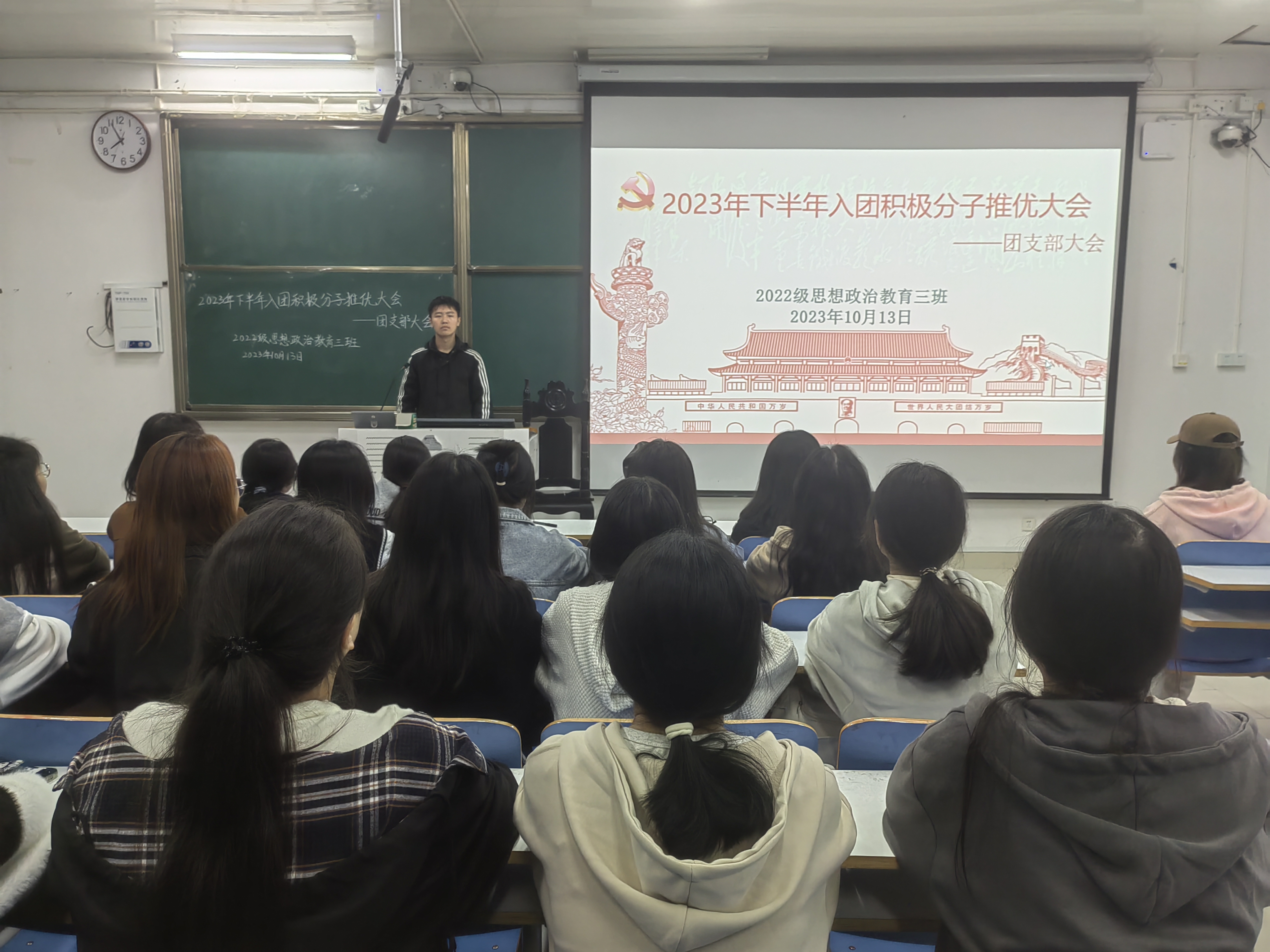 10月13日上午,永利集团官网2022级思想政治教育三班在514教室开展入团积极分子推优大会。永利集团官网2022级思想政治教育三班全体团员共同参与此次推优大会。大会由团支书余浩洋主持。