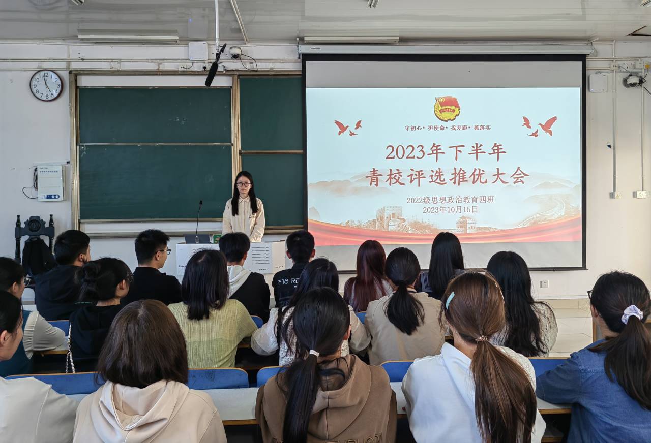 10月15日上午,永利集团官网2022级思想政治教育四班在社科楼514教室召开“青年共产主义学校”推优大会。永利集团官网2022级思想政治教育四班全体同学参与本次大会。团支书牛志杰主持本次会议。