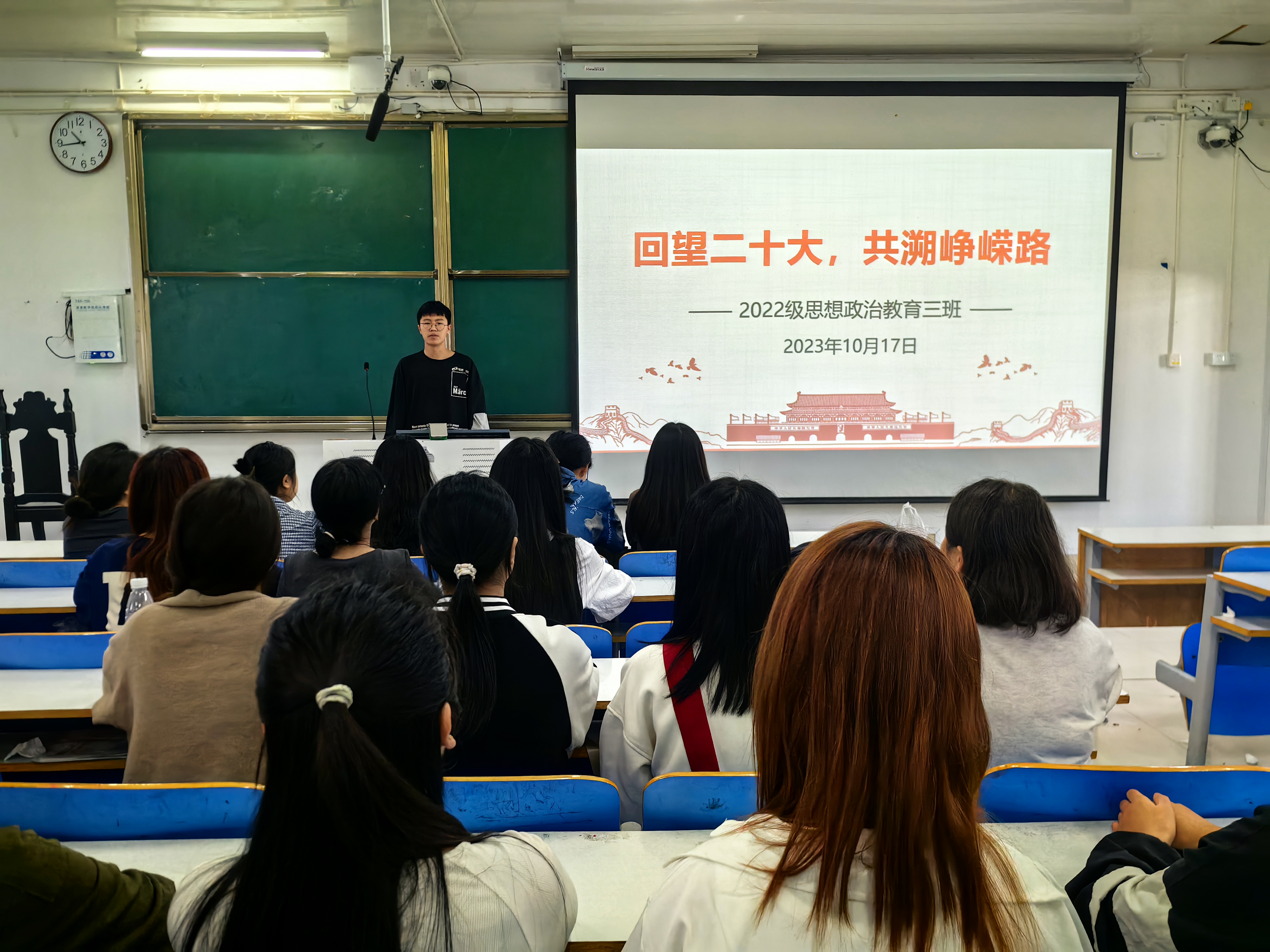 10月17日下午,永利集团官网2022级思想政治教育三班在社科楼515教室召开“回望二十大,共溯峥嵘路”主题团课。永利集团官网2022级思想政治教育三班全体成员共同参加本次团课,团课由团支书余浩洋主持。