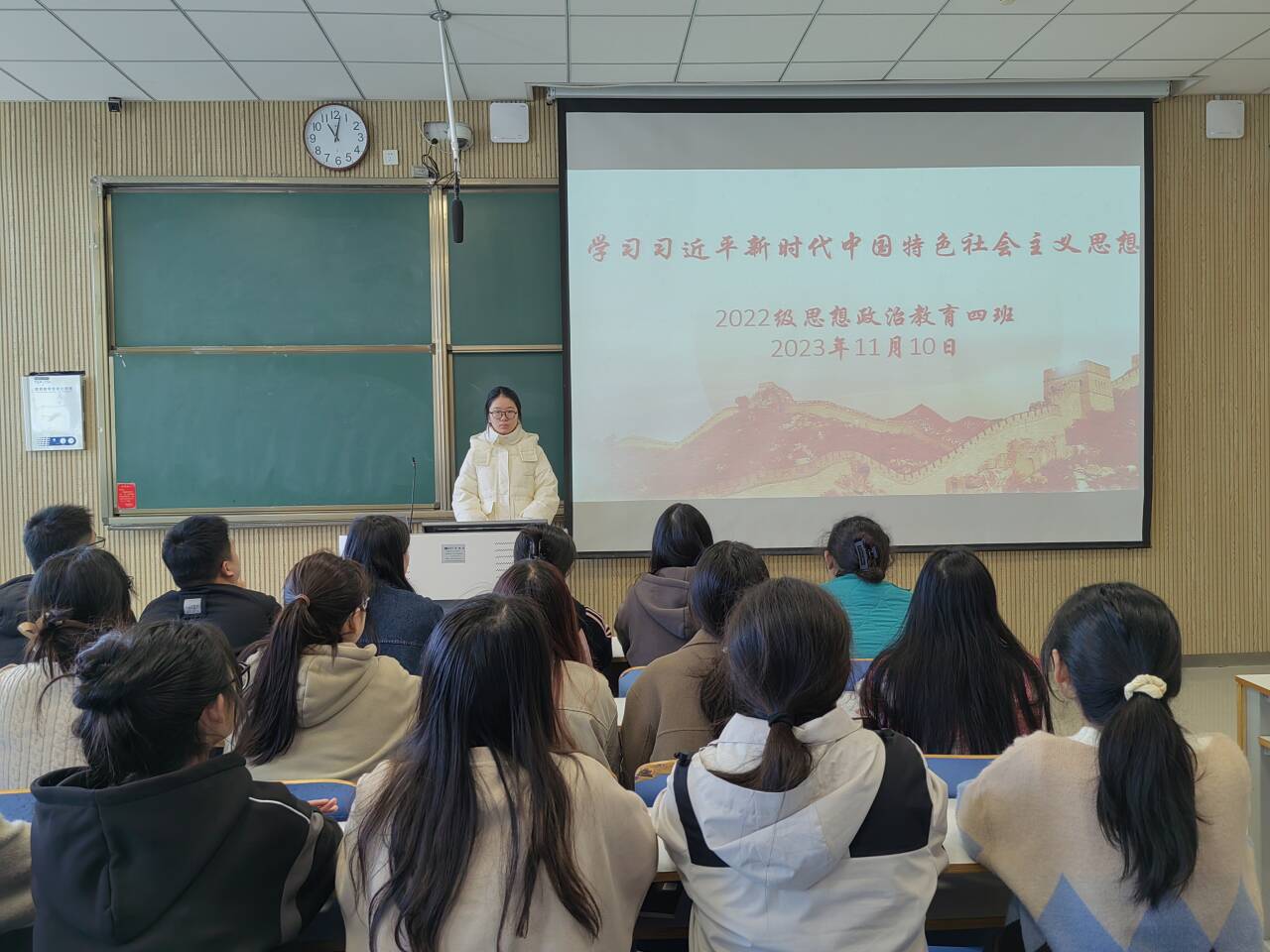 会议伊始,牛志杰强调,党的十八大以来,习近平总书记把共产主义信仰、社会主义信念与中华民族千年理想有机结合,彰显了“走自己的路”的强大底气和自信。随后,牛志杰通过多媒体课件、视频播放、你问我答、分享交流等多种方式,将理论联系实际,帮助大家更好地理解习近平新时代中国特色社会主义思想的重要理念及内涵,这宣传了新时代的伟大成就和巨大变化,让学生们在浸润式的主题活动中了解国家大事,感受新思想,培养学生社会责任感和家国情怀。最后,同学们围绕所学内容开展了学习讨论,大家纷纷表示,要从习近平新时代中国特色社会主义思想中汲取奋发进取的智慧,内化于心,外化于行,坚定理想信念,做有理想、敢担当、能吃苦、肯奋斗的新时代好青年,在强国建设、民族复兴的接力赛中贡献青春力量。