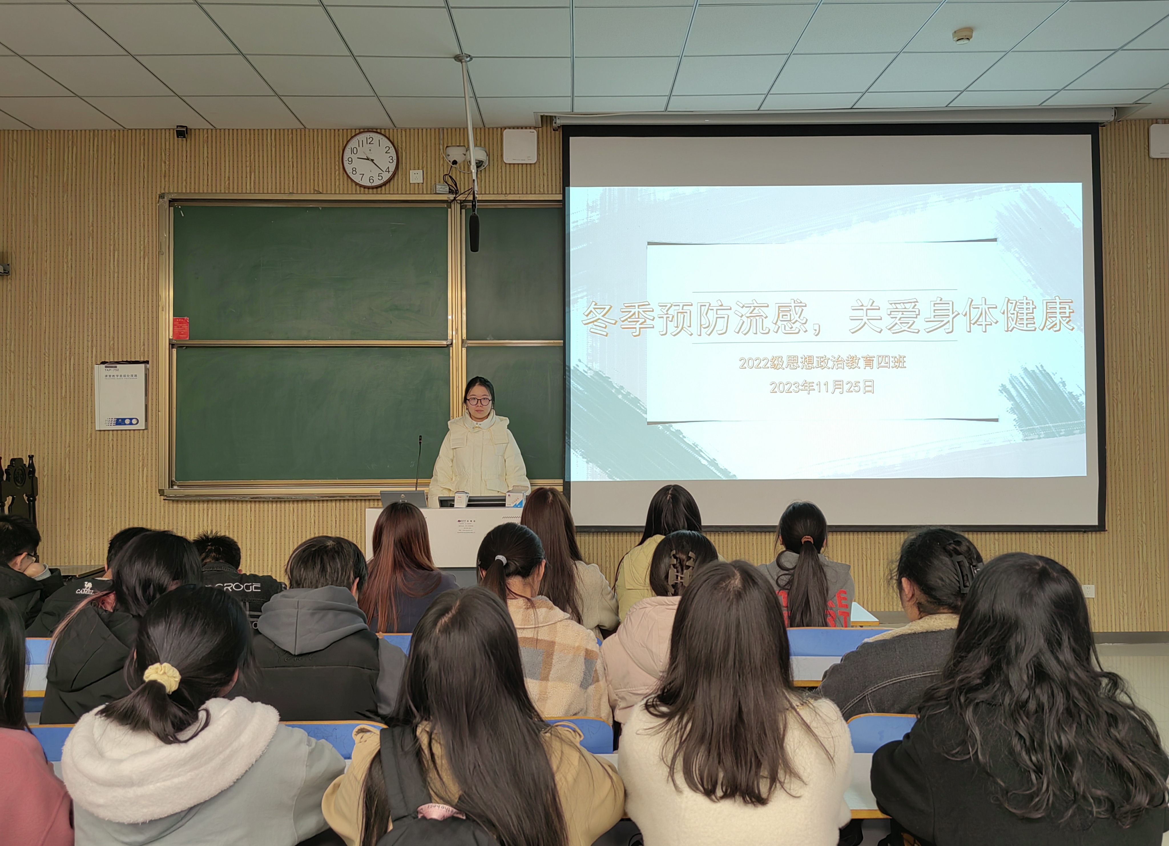 为普及冬季流感健康知识,提高同学们对于疾病的防治意识和能力,11月25日下午,永利集团官网2022级思想政治教育四班在社科楼515教室召开“冬季预防流感,关爱身体健康”主题班会。永利集团官网2022级思想政治教育四班全体同学参与本次班会。本次班会由班长牛志杰主持。