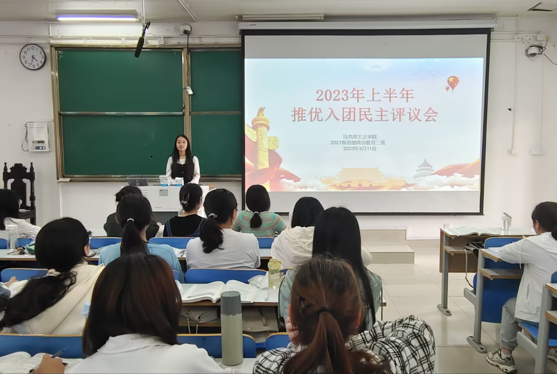 4月11日下午,永利集团官网2021级思想政治教育三班在社科楼514教室举办2023年上半年推优入团民主评议会。永利集团官网2021级思想政治教育三班全体团员参与此次会议。会议由团支书王岚霄主持。