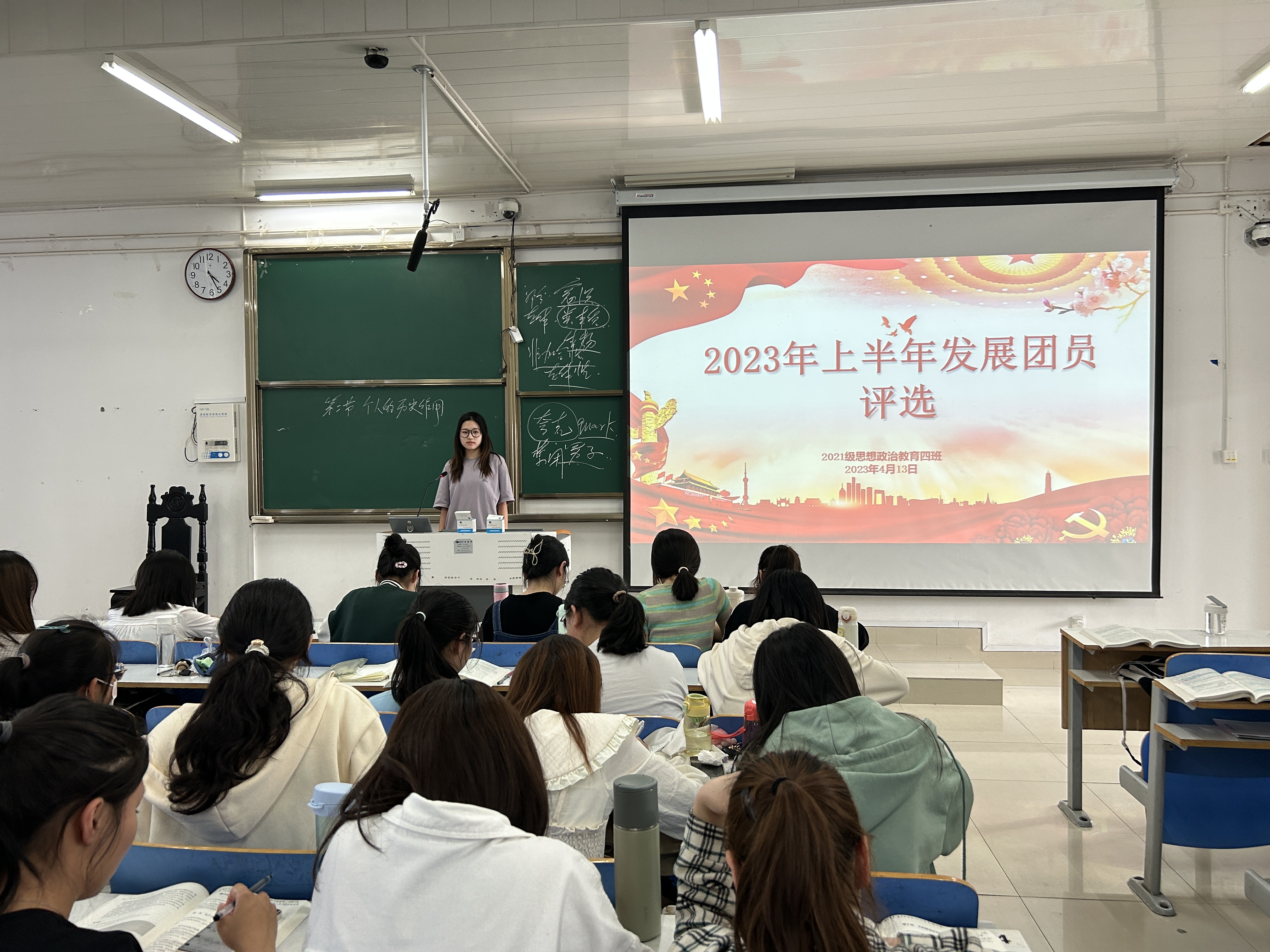 4月13日下午,永利集团官网2021级思想政治教育四班在社科楼514教室召开2023年下半年发展团员民主评议会。2021级思想政治教育四班全体团员共同参会。会议由团支书刘珂含主持。
