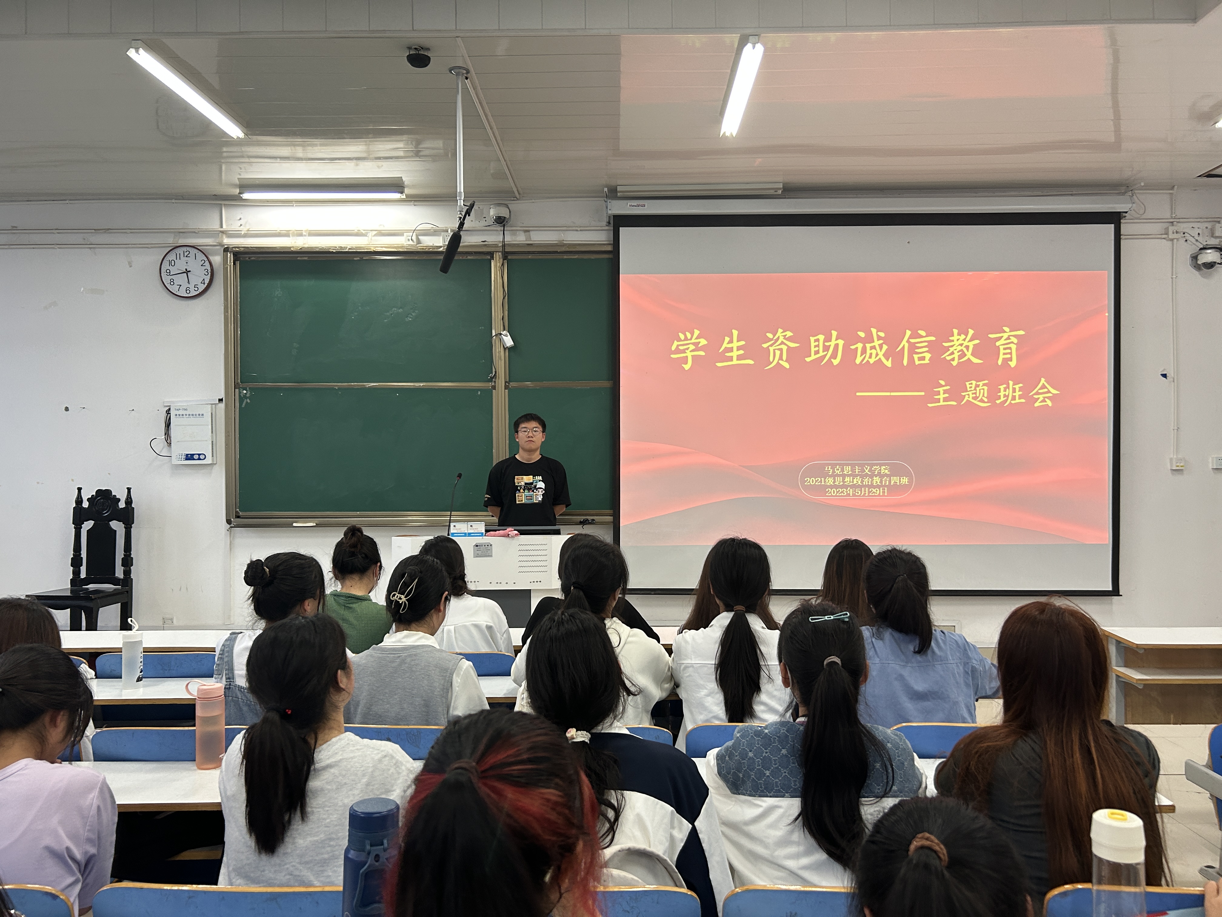 5月29日,永利集团官网2021级思想政治教育四班在社科楼514教室开展“学生资助诚信教育”主题班会。永利集团官网2021级思想政治教育四班全体同学参加本次会议。会议由副班长常康哲主持。